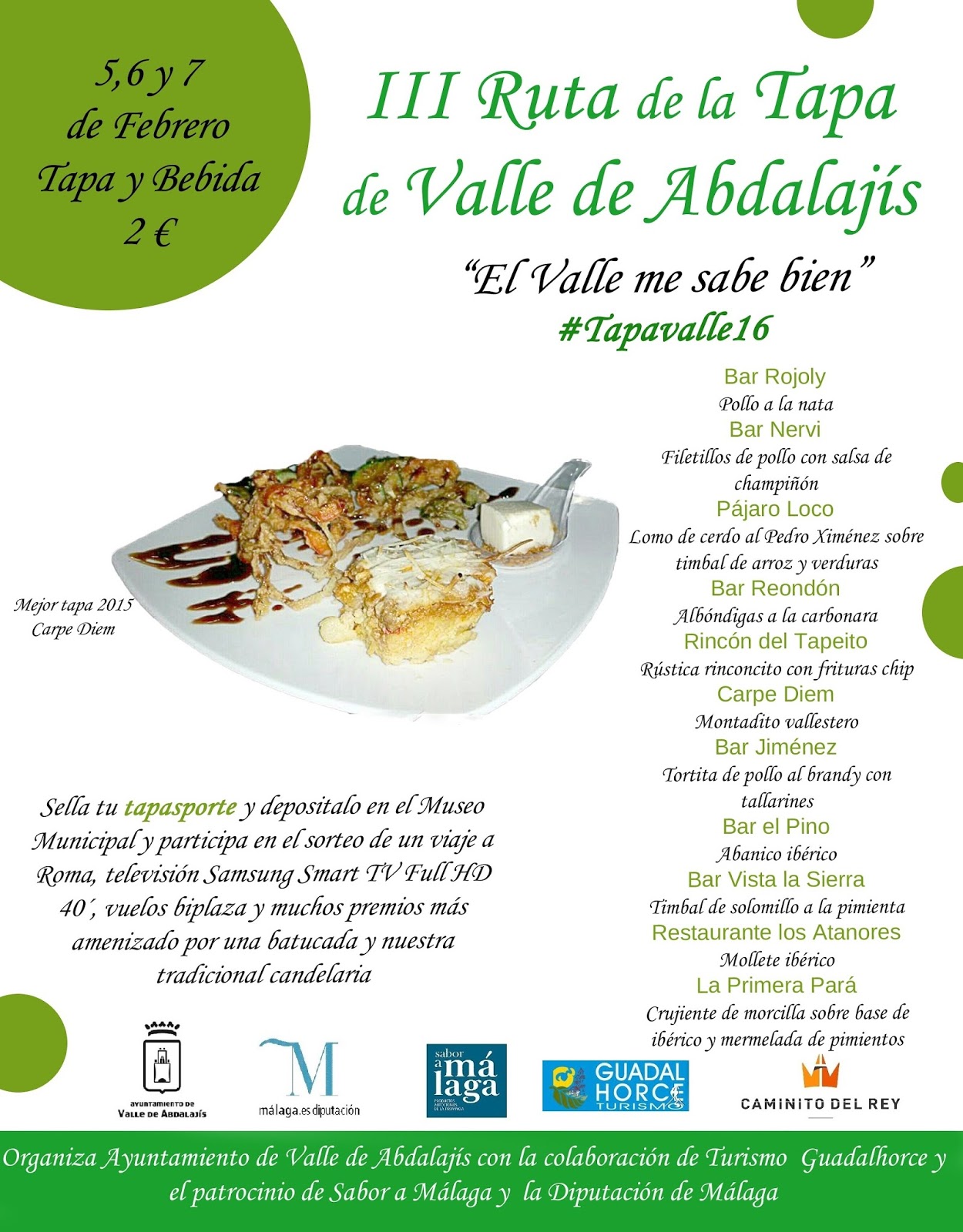 Bajo el lema ‘El Valle me sabe bien’ se celebra este fin de semana la III Ruta de la Tapa de Valle de Abdalajís, que espera recibir la visita de más de 2.000 personas. Durante los días 5 al 7 de febrero, vecinos y visitantes podrán degustar las mejores tapas del municipio mientras disfrutan de las actividades paralelas que se han preparado para la ocasión.