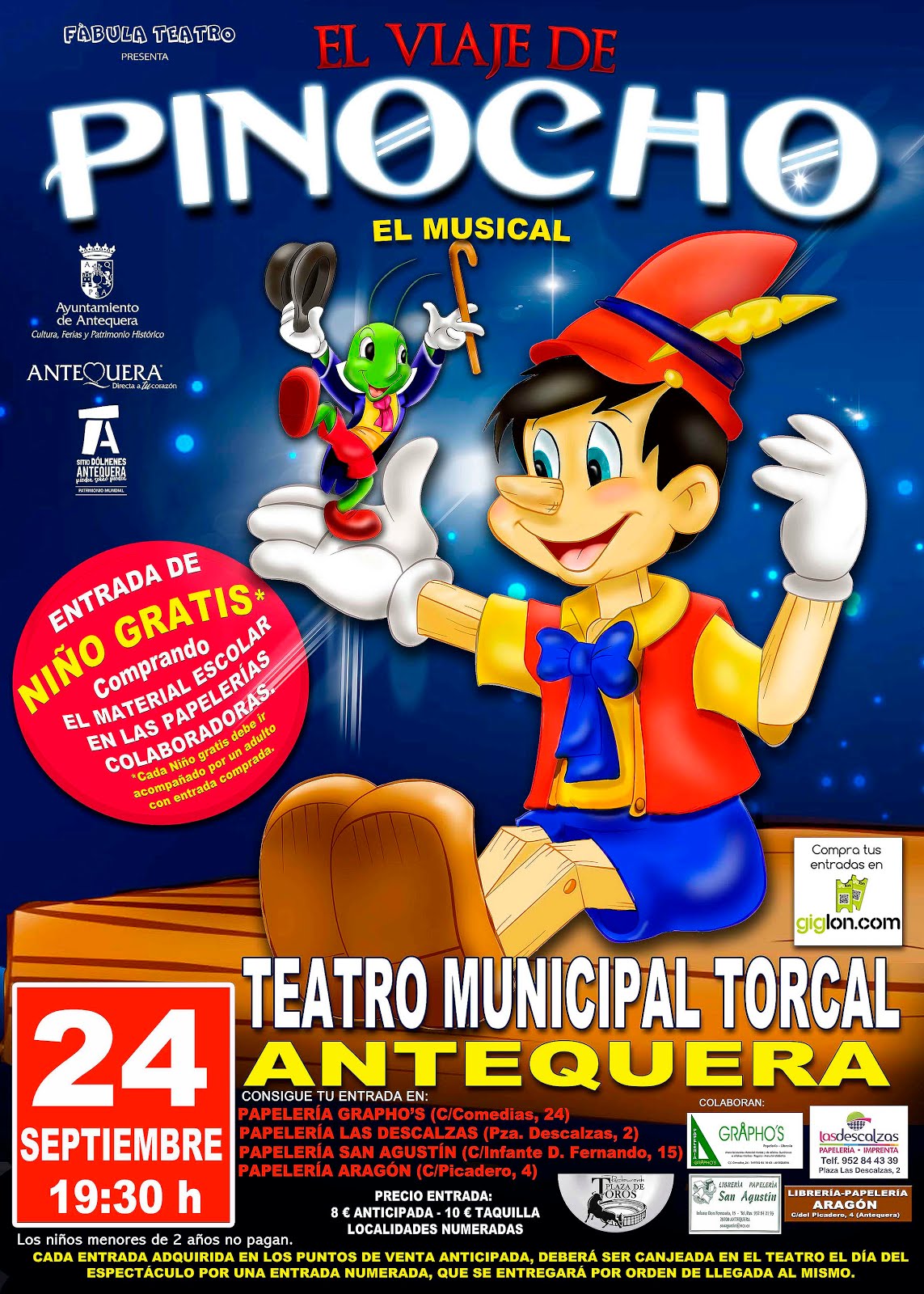 El Teatro Municipal Torcal va a acoger el próximo viernes 24 de septiembre la representación del musical infantil ‘El Viaje de Pinocho’.