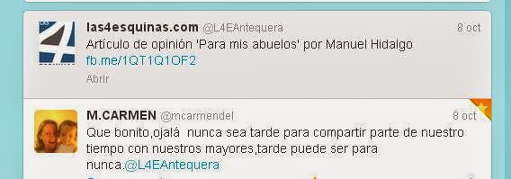 Esta semana en nuestro twitter @L4Eantequera, en el que ya contamos con casi 1627 seguidores fijos, destacamos las siguientes publicaciones.