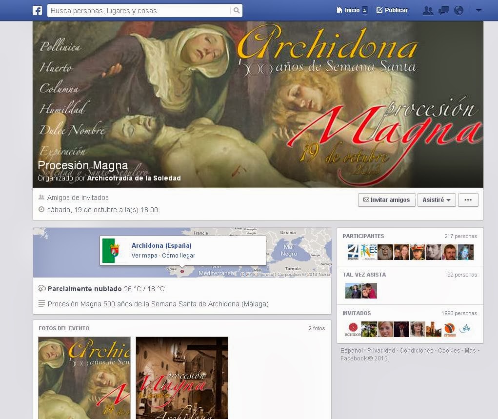 La Archicofradía de la Soledad de Archidona nos ha mandado que el sábado 19 de octubre, se celebrará la Procesión Magna con motivo de los 500 años de la Semana Santa Archidonesa, a las 18:00 horas.