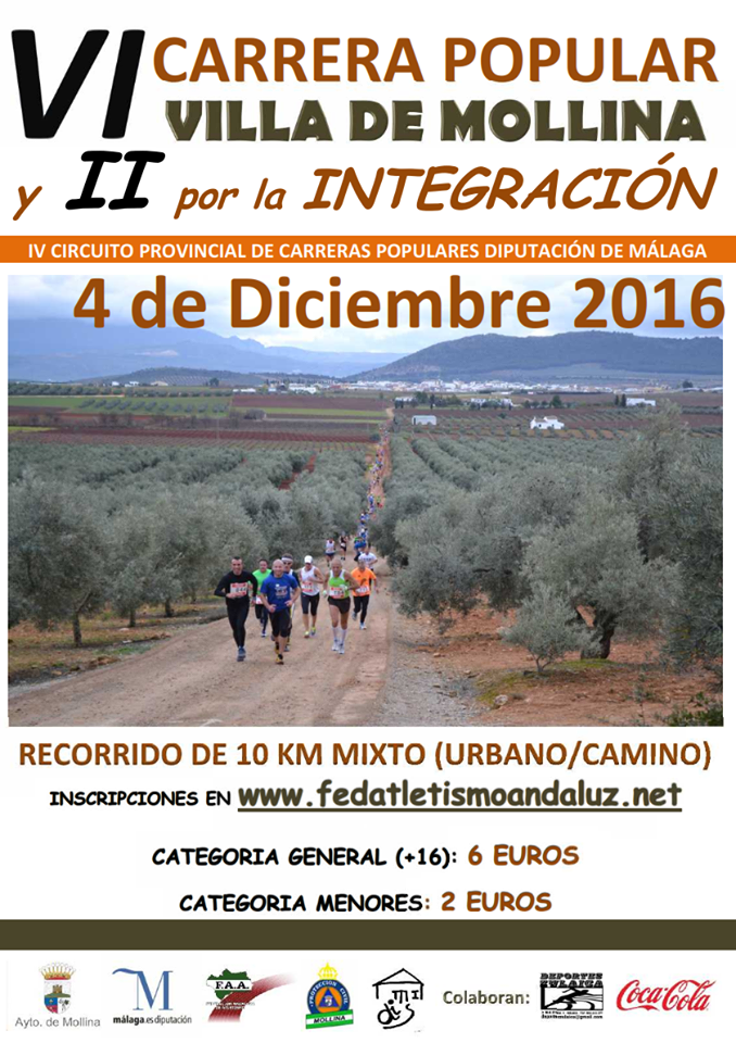 Comarca de AntequeraMollinaOcio Este domingo tendrá lugar la sexta carrera popular y segunda por la integración en Mollina Por Redacción Las 4 Esquinas - 30 de noviembre de 2016 2 235 FacebookTwitterPinterestWhatsApp PUBLICIDAD