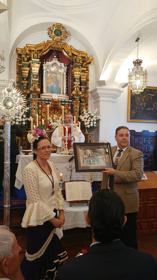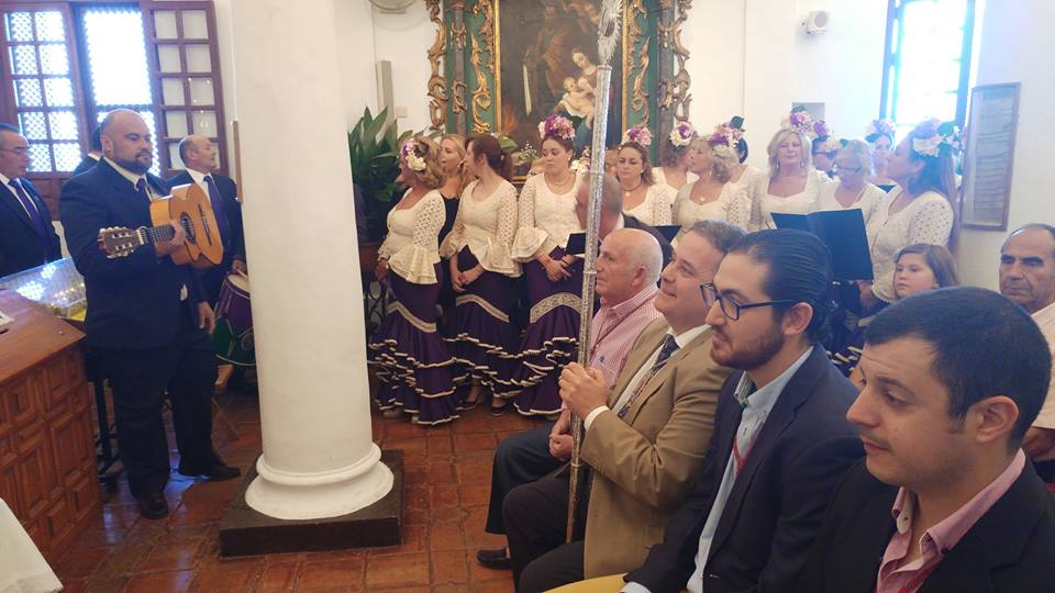Actuó el coro rociero ‘Al Compás del Tamboril’, quienes al final de la misa procedieron a hacer una ofrenda floral y regalaron un cuadro con la medalla del coro, las cuales fueron bendecidas e impuestas a los miembros.
