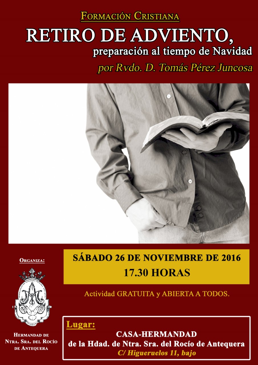 Este sábado a las cinco y media de la tarde tendrá lugar una formación en nuestra Casa Hermandad para el inicio del Adviento, que será impartida por el Director Espiritual D. Tomas Pérez Juncosa.