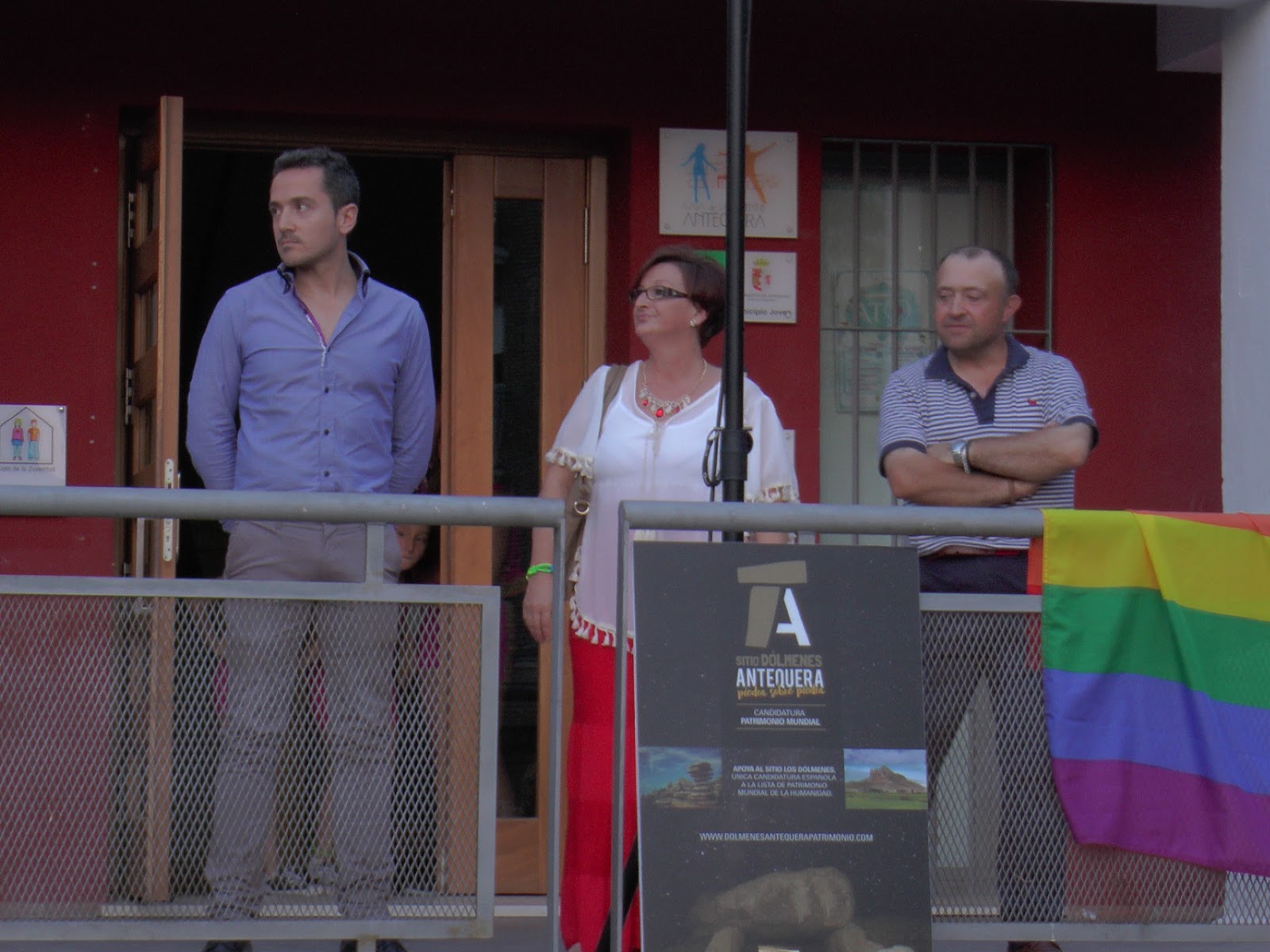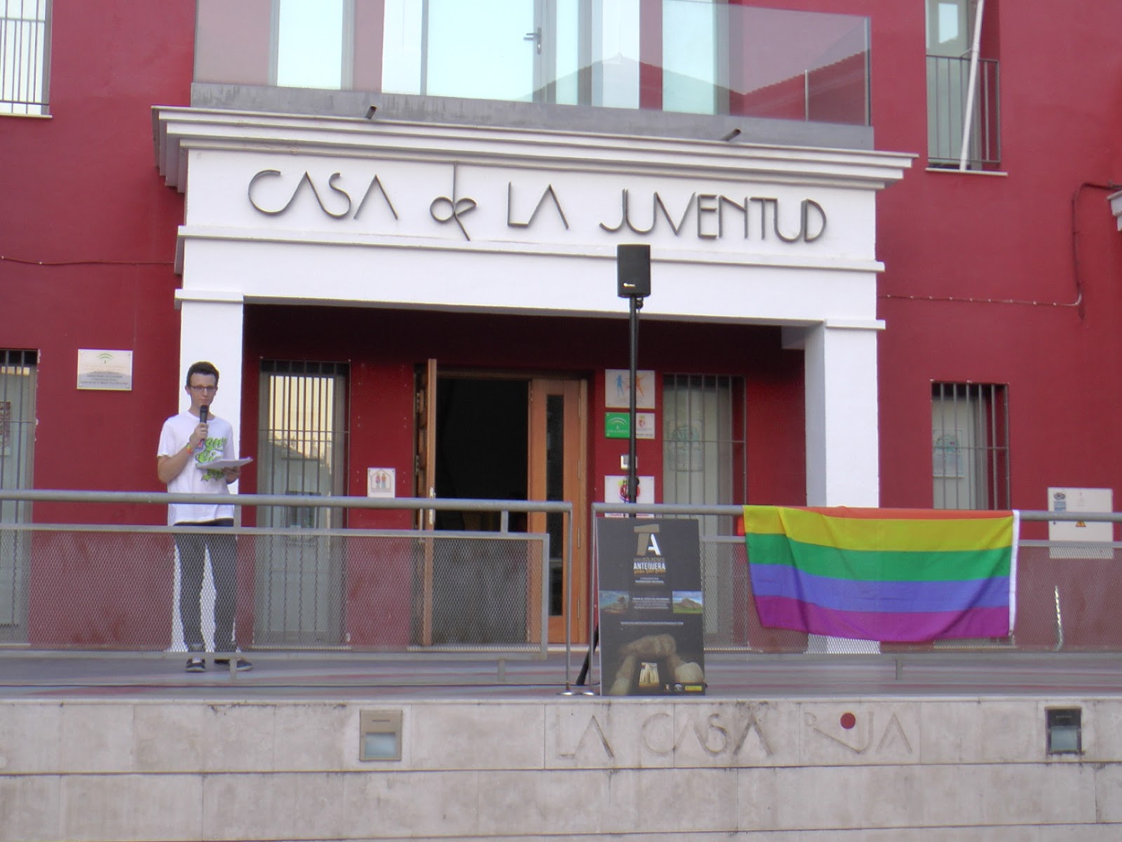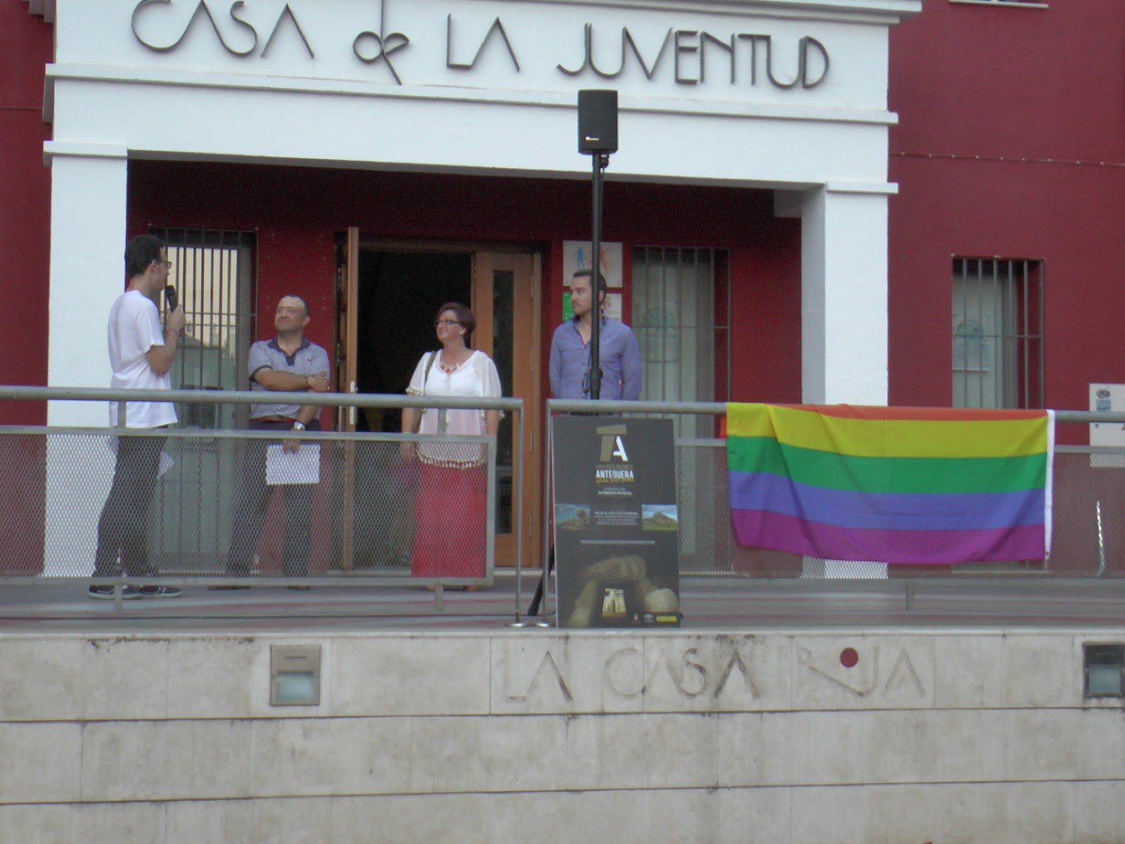 COLEGA Antequera celebró el viernes, en la Plaza de María Cristina, delante de la fachada de la Casa de la juventud, un acto con motivo de los Derechos de Lesbianas, Gays, Bisexuales y Transexuales. Es el primer año, que este colectivo celebra el evento en un lugar público y que salen a la calle para reivindicar los derechos de estas personas; aunque ya es el tercer año consecutivo que el colectivo organiza el evento.