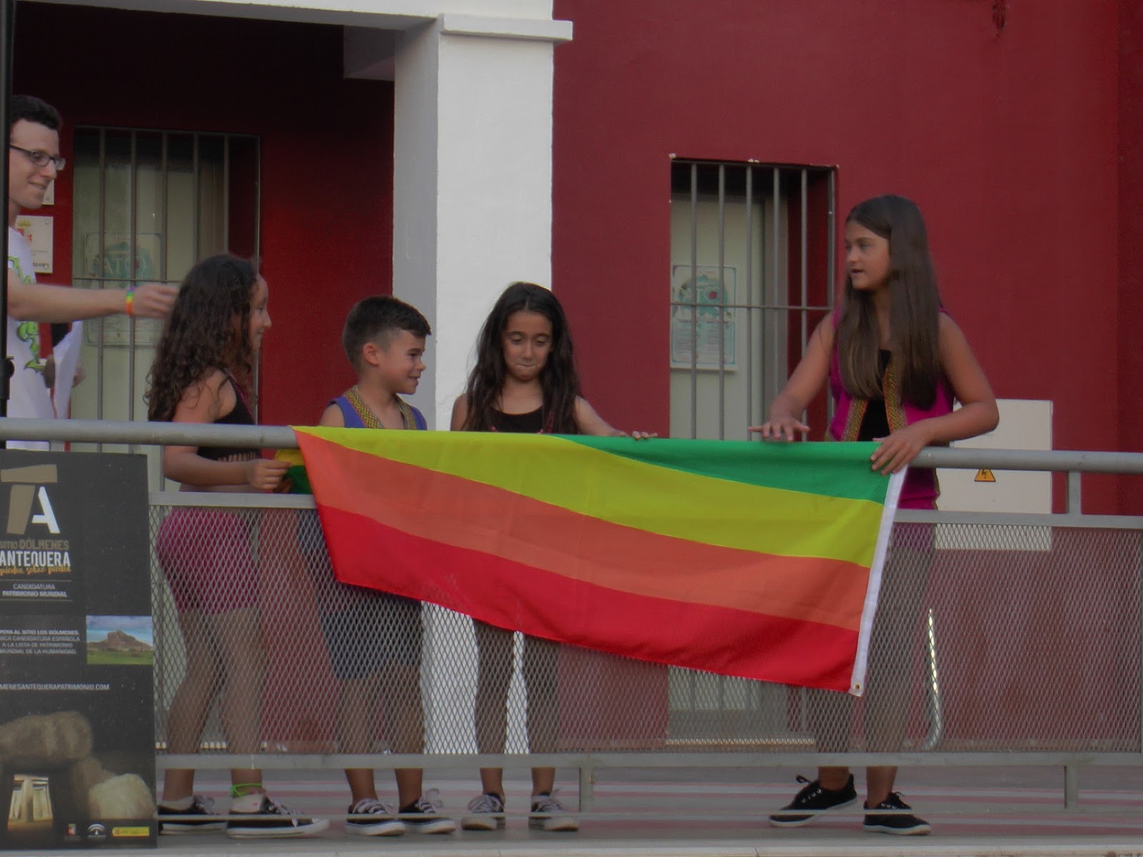 La apertura del evento vino de la mano del presidente de COLEGA Antequera, Antonio Jesús Palomo, que, acto seguido a sus palabras de agradecimiento a todos los asistentes, dio la entrada al «arco iris», la bandera que simboliza el orgullo gay y lésbico, que vino acompañada de los más pequeños del Taller de Baile Municipal «Funky Dance».