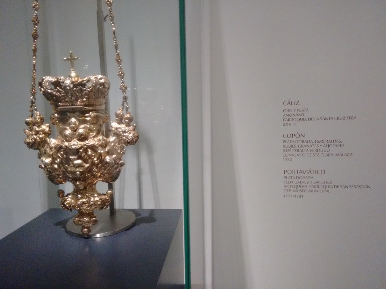 Tras cruzar por una cuarta sala, que llamará bastante la atención del visitante por su espectacular montaje, la penúltima sala de la muestra con piezas religiosas que forman parte de la Liturgia de la Eucaristia cuenta entre ellas con el portaviático en plata dorada realizado por Félix Gálvez y Sánchez y fechado entre los años 1777 y 1781, que forma parte de los elementos religiosos de la Iglesia Parroquial de San Sebastián y que se encuentra durante el año en depósito en el Museo de la Ciudad de Antequera.