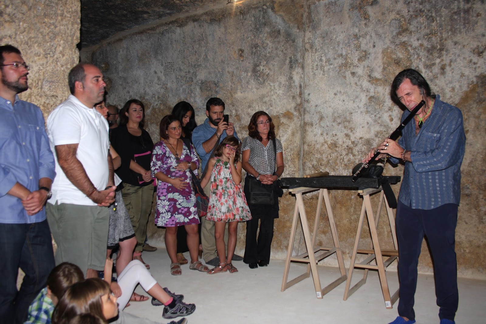 El dolmen de Menga se convirtió anoche en un espacio para la música, acogiendo un concierto casi privado de Jorge Pardo y de Txalaparta, instrumento de percusión de origen vasco.