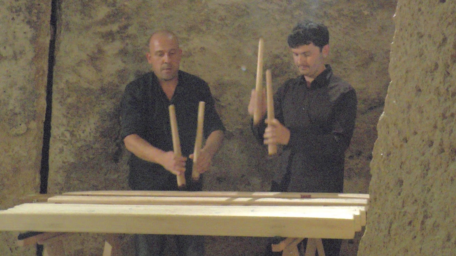 Los primeros en actuar fueron Jesús Mari Domínguez y Mikel Elgarresta, ambos encargados de hacer sonar la Txalaparta. Los dos provienen de Guipúzcoa y quedaron enamorados de la ciudad. Domínguez aseguró que «he alucinado», lo de hoy se lo «contaré a mi hija y ella a los suyos».