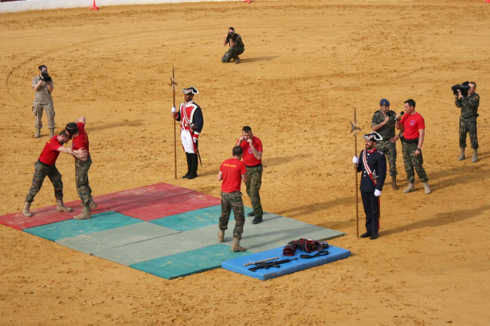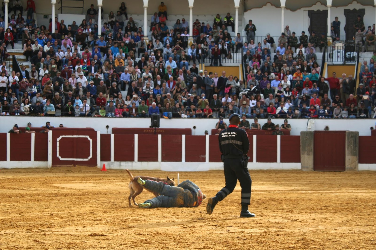 Ayer la Guardia Real protagonizó en la Plaza de Toros de Antequera una demostración de sus diferentes especialidades de trabajo: artes marciales; perros de seguridad y combate, perros de detección de explosivos, y caballos entre otros.