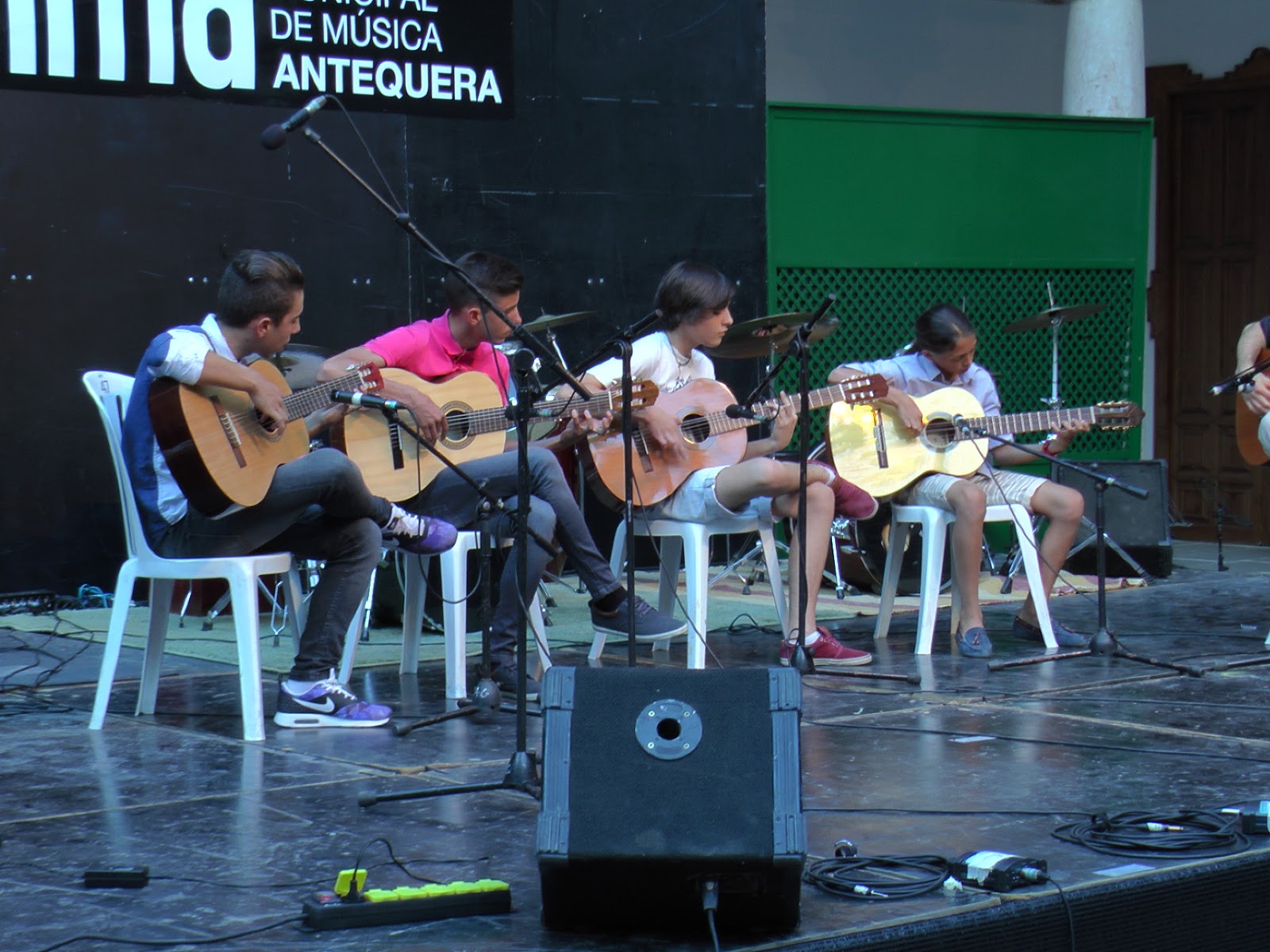 Este viernes por la tarde, la Escuela Municipal de Música de Antequera, EMMA, ha celebrado en el patio del Ayuntamiento de Antequera su fiesta fin de curso con un concierto de sus alumnos. Con este, es el cuarto año que la Escuela lleva abierta.