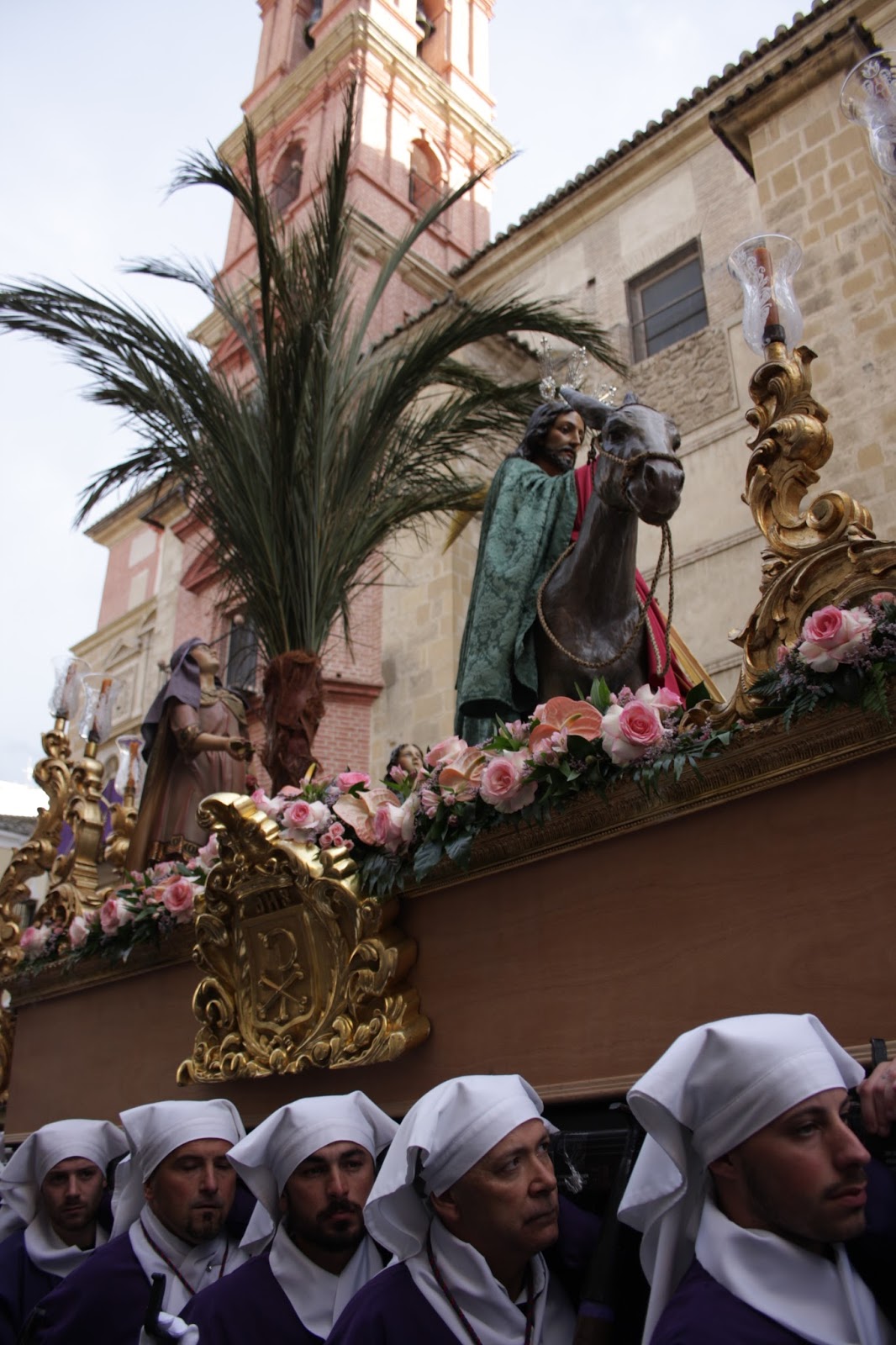 La Pollinica, Jesús a su Entrada a Jerusalén, sacó a la calle este año su «revestimiento provisional», señaló su Hermano Mayor, Abel González. Esta talla en madera, hecha por el sevillano Juan Manuel Pérez Pérez, es un trabajo a largo plazo que ha comenzado con el cambio de las andas (varales) y la canastilla como pudieron ver todos los antequeranos.