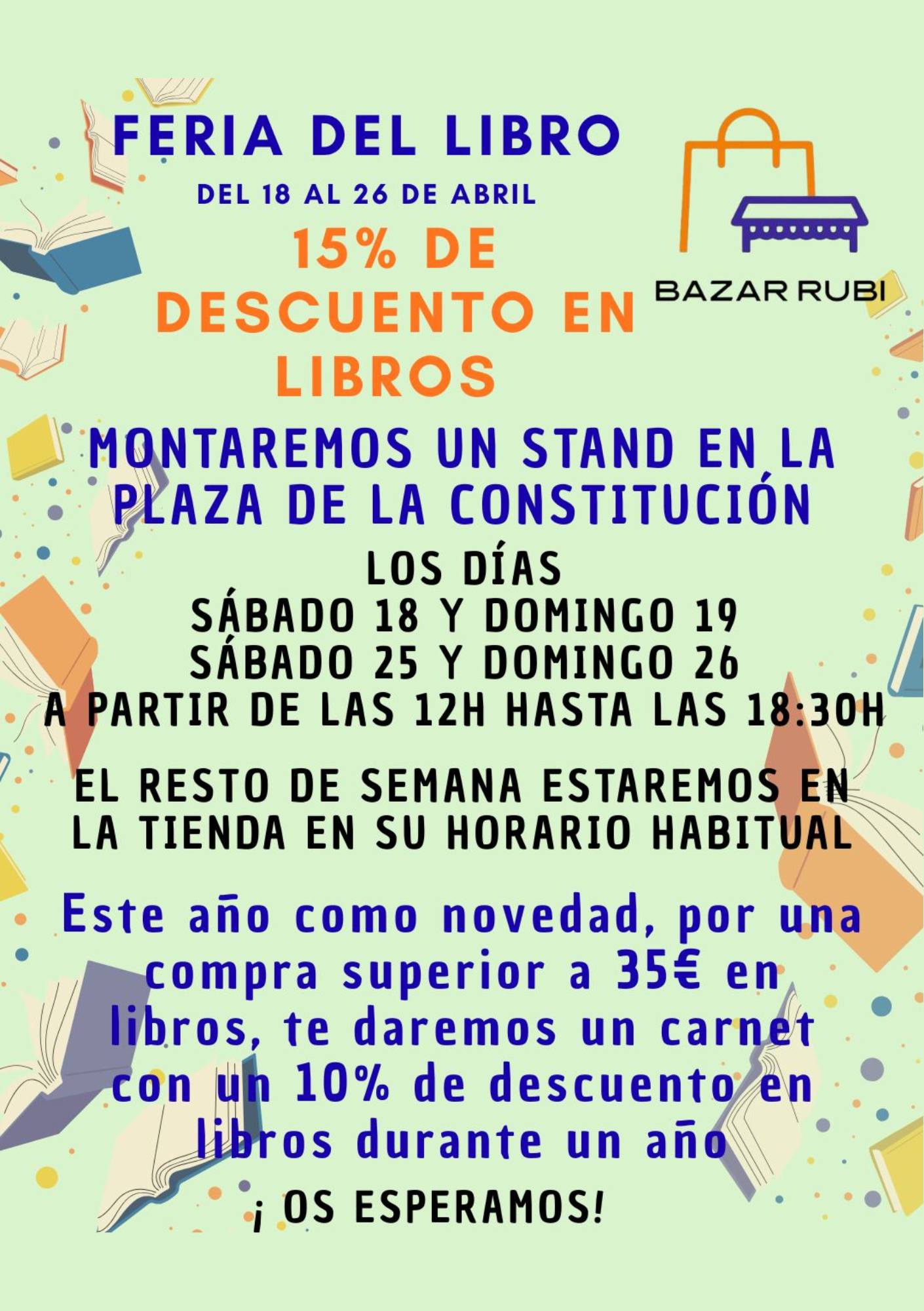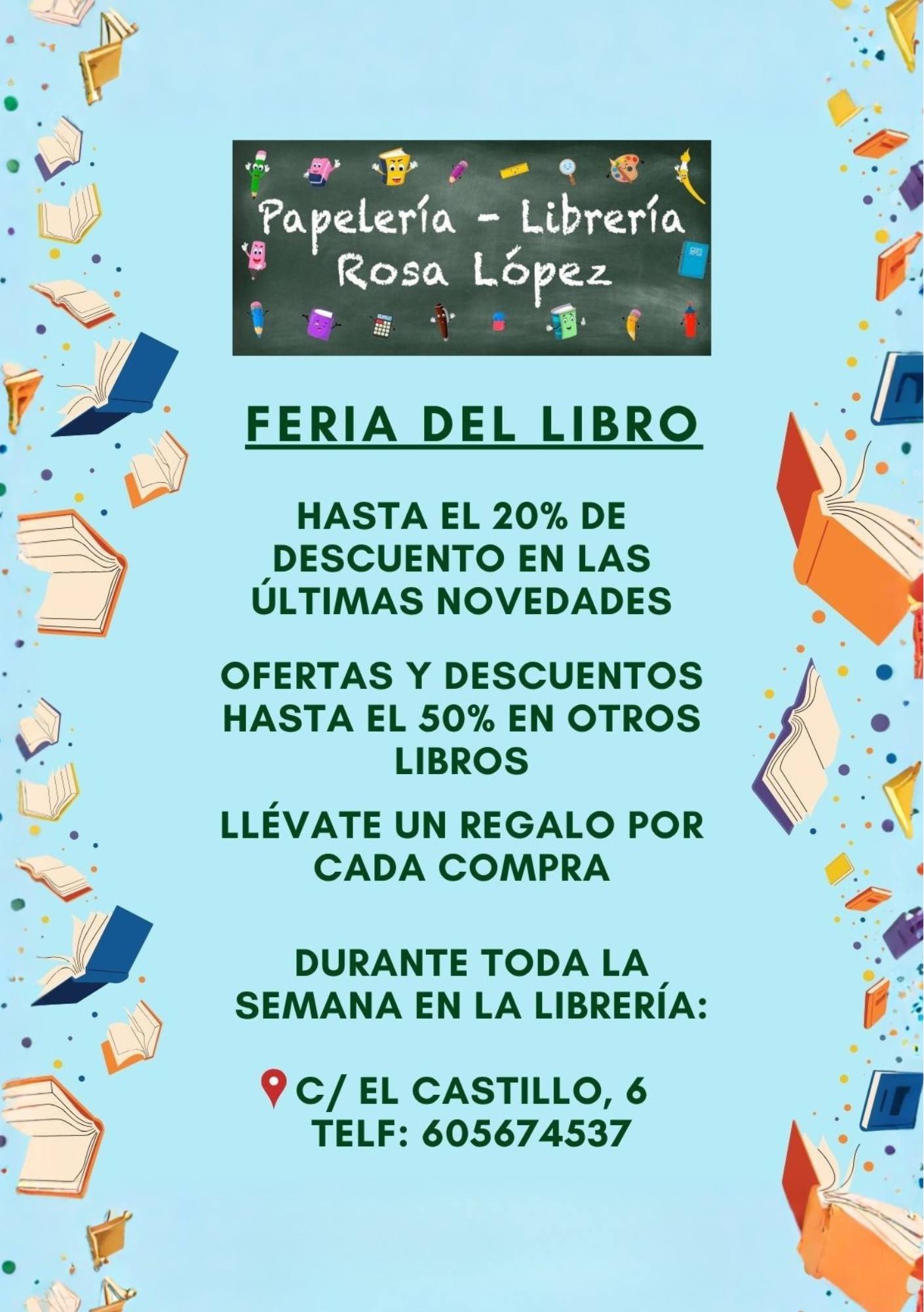 El establecimiento Bazar Rubí instalará un puesto en la Plaza de la Constitución durante los fines de semana del 18, 19, 25 y 26 de abril, ofreciendo descuentos del 15%. Por su parte, la Librería Rosa López, ubicada en la calle El Castillo, aplicará rebajas de hasta el 50% en volúmenes seleccionados y un 20% en novedades editoriales durante el transcurso de la semana.