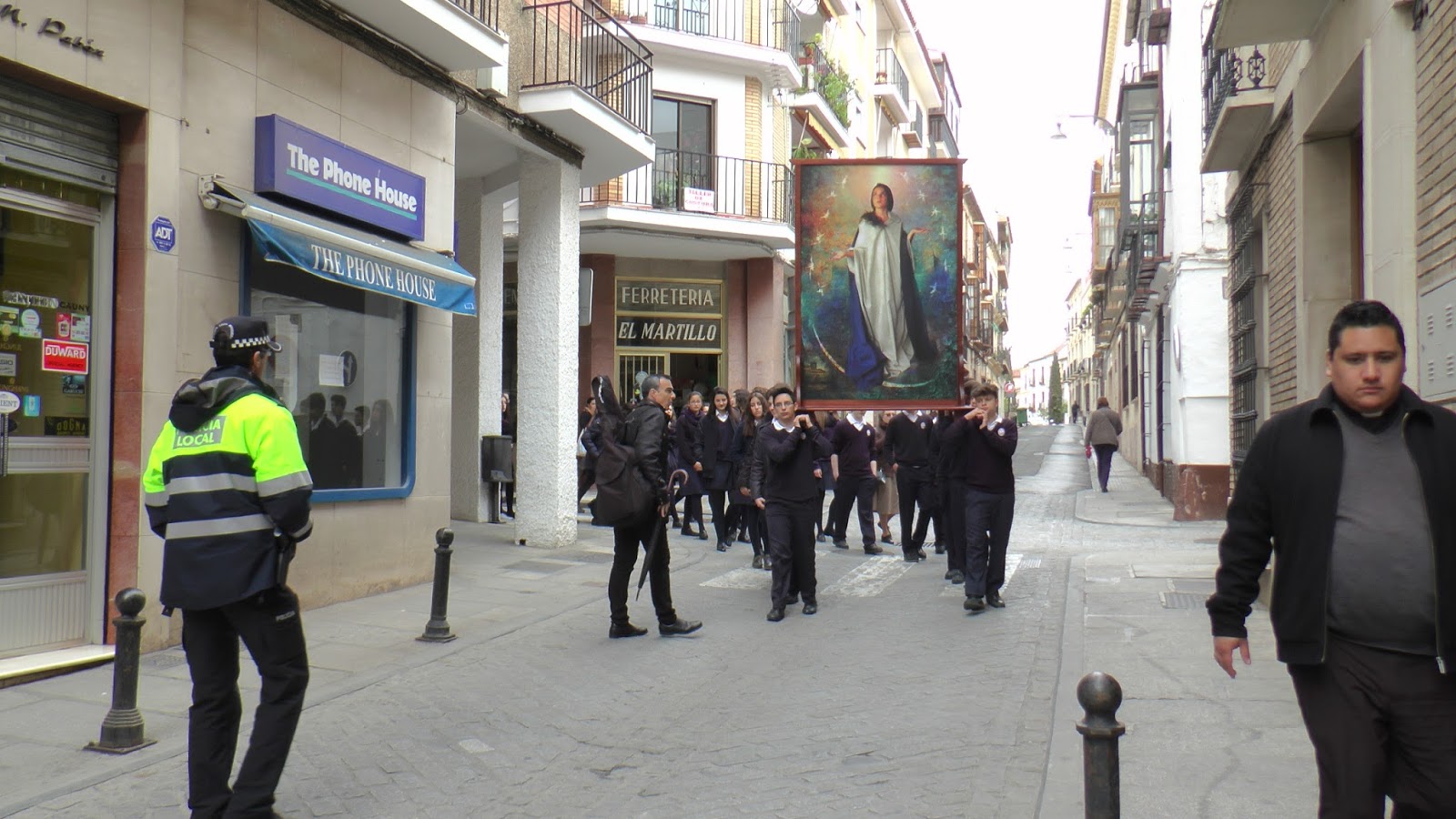 La llegada y traslado ha sido presenciado por alumnos de los Centros Educativos María Inmaculada y Nuestra Señora de la Victoria.