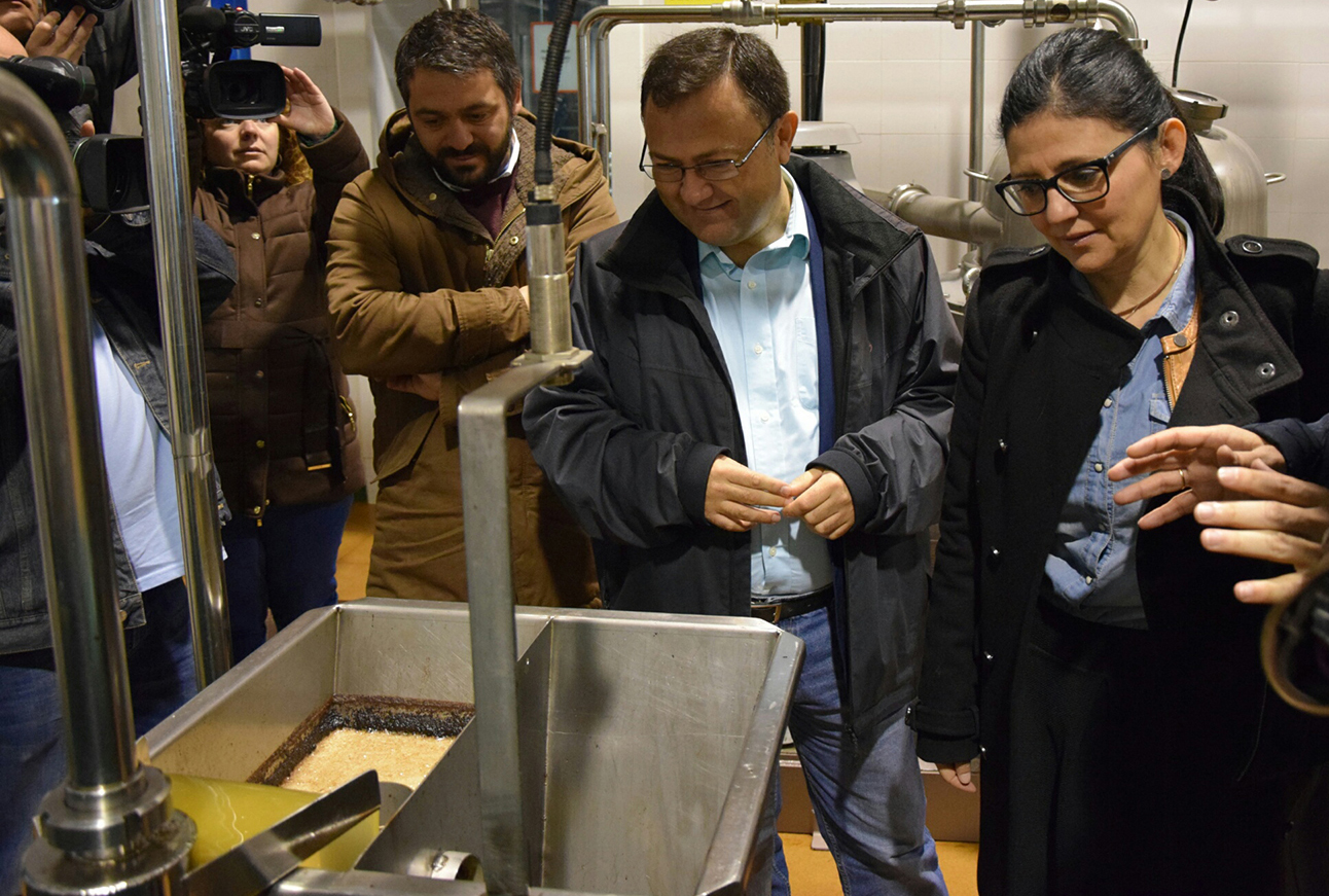 La primera edil ha acompañado a Heredia en su visita a la Cooperativa Olivarera ‘La Purísima’, beneficiaria de casi 160.000 euros de las últimas subvenciones regional a las industrias agroalimentarias de la ComarcaNororiental de Málaga (Nororma). En total las ayudas alcanzaron el pasado años los 338.000 euros, destinado a la modernización de las infraestructuras y a los cambios de maquinaria.