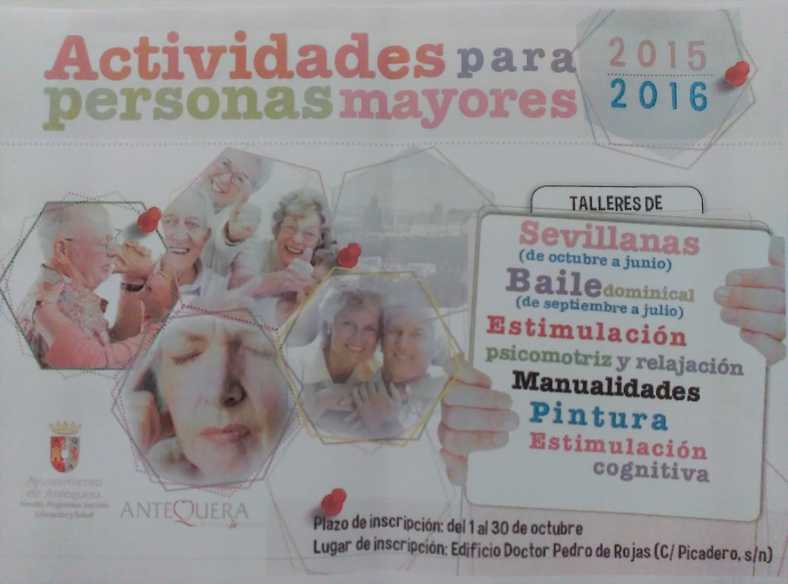 Con motivo del Día Internacional del Mayor, uno de octubre, el ayuntamiento de Antequera ha presentado esta mañana las ‘Actividades para personas mayores 2015-16’, cuyo plazo de matriculación empieza hoy. Este año, según ha explicado Rafael González, técnico del área de cooperación, el número de participantes puede llegar a los más de 500. Sin embargo, esta cifra puede variar ya que una persona puede apuntarse a más de una actividad ya que según ha explicado González “los horarios no se pisan”.