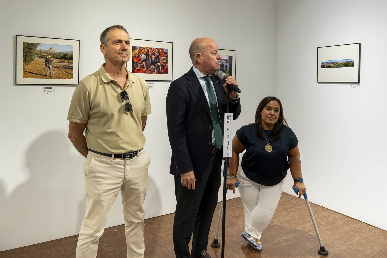 El alcalde Manolo Barón, la concejal de Anejos, Sara Ríos, y el presidente de la Agrupación Fotográfica Antequerana (AFA), José Díez de los Ríos, han presentado esta mañana la exposición con las 38 obras seleccionadas en la segunda convocatoria del certamen.