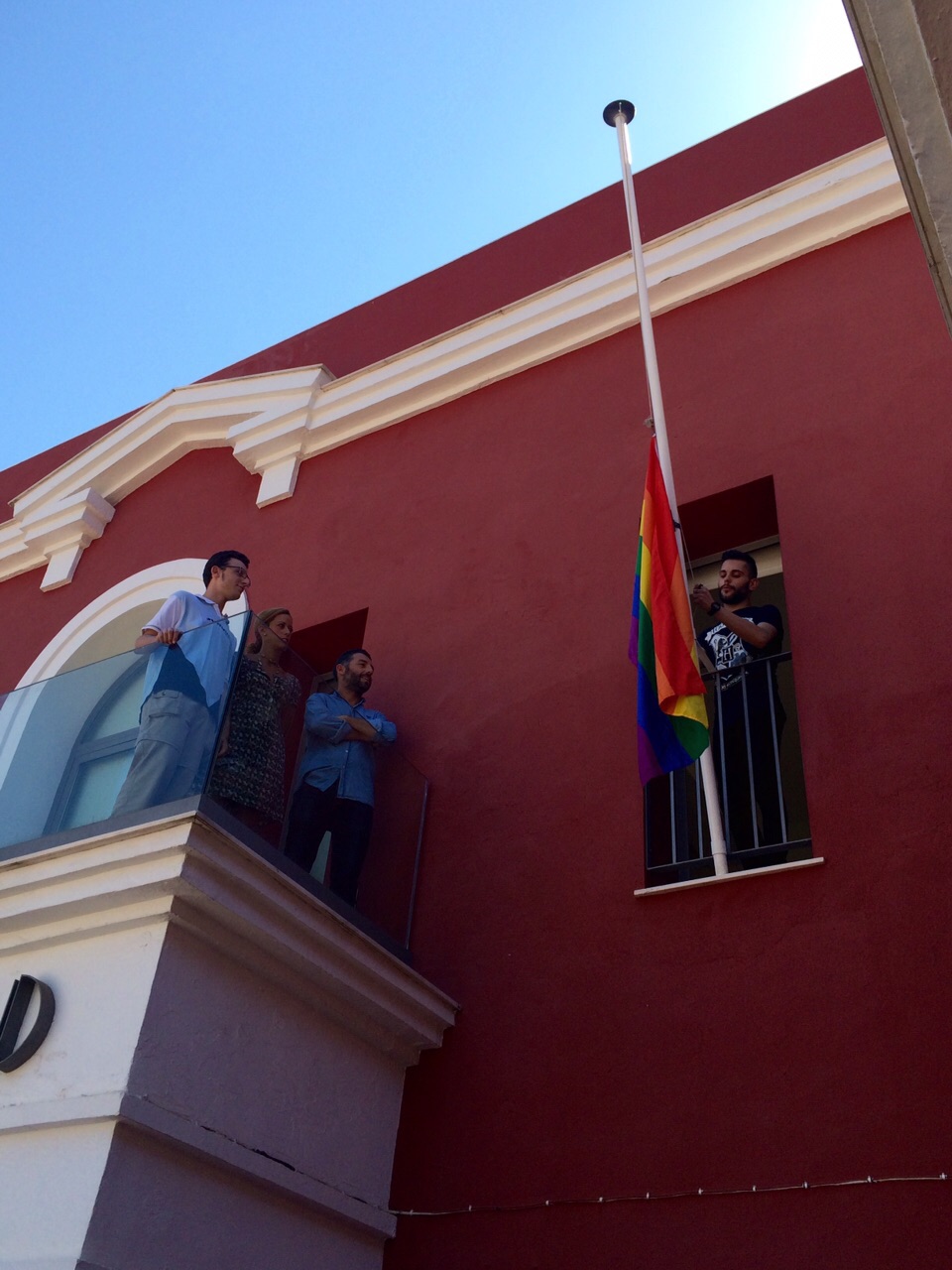 COLEGA-ANTEQUERA (Colectivo LGBT de Antequera, y miembros de la Federación Andalucia Diversidad LGBT) quiere felicitar al Ayuntamiento de Antequera, por sumarse a la iniciativa de izar la bandera arco iris, símbolo de la diversidad sexual, durante este viernes, día cercano al Orgullo LGBT y Día Internacional Pro Derechos LGBT.