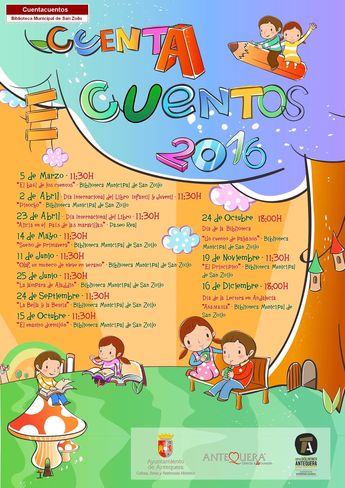 La Biblioteca San Zoilo de Antequera arranca este sábado su programación de cuentacuentos para este año. Y lo hará con una obra titulada ‘El baúl de los cuentos’, a partir de las 11:30 horas.