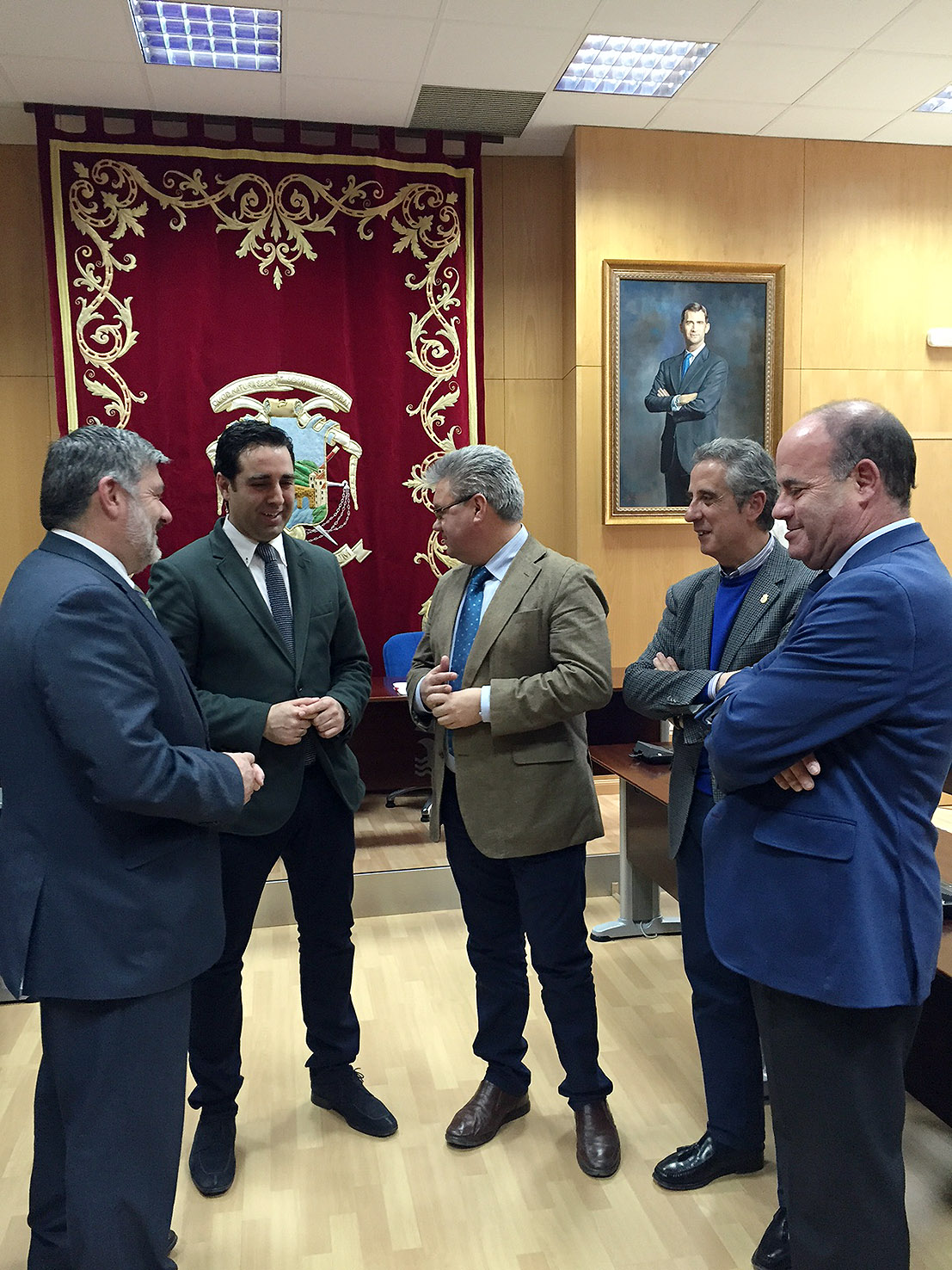 En las fotos enviadas, de derecha a izquierda, el alcalde de Antequera, Manolo Barón, el alcalde de Lucena, Juan Pérez, el alcalde de Puente Genil, Esteban Morales, el alcalde de Alcalá la Real, Carlos Hinojosa, y el alcalde de Écija, David García.