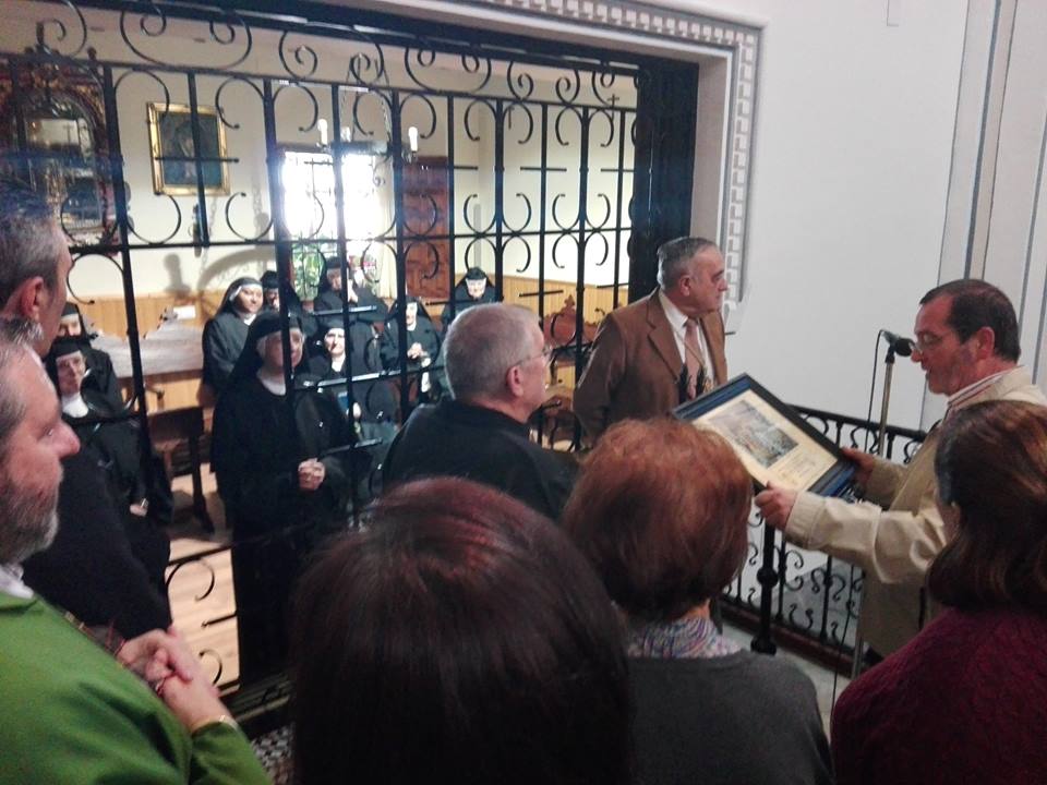 En la mañana del pasado domingo 16 de octubre se llevó a cabo por parte de la Cofradía del Huerto de Archidona, un acto de reconocimiento a la Comunidad de Monjas Mínimas. Una representación de la Junta Directiva asistió a la misa dominical en la iglesia del convento de la citada Congregación religiosa, a cuyo término tuvo lugar el mencionado acto, derivado de la celebración el pasado año del Santo Rosario Vespertino realizado con motivo del IV Centenario de la Cofradía, que tuvo su inicio en el citado templo, tras haber permanecido la imagen de María Santísima del Amparo durante dos días en compañía de la Comunidad.