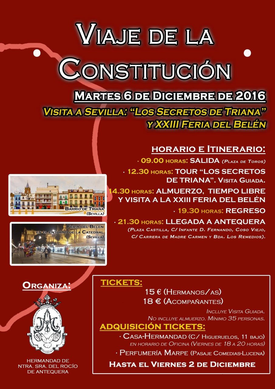 ya es tradicional, el próximo 6 de Diciembre la Hermandad organiza un viaje a