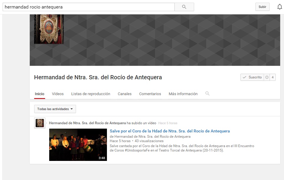 De esta manera, la Hermandad se ha estrenado esta semana en una nueva red social como es la de Youtube, donde se podrán ver vídeos de los cultos y actividades de la Hermandad.