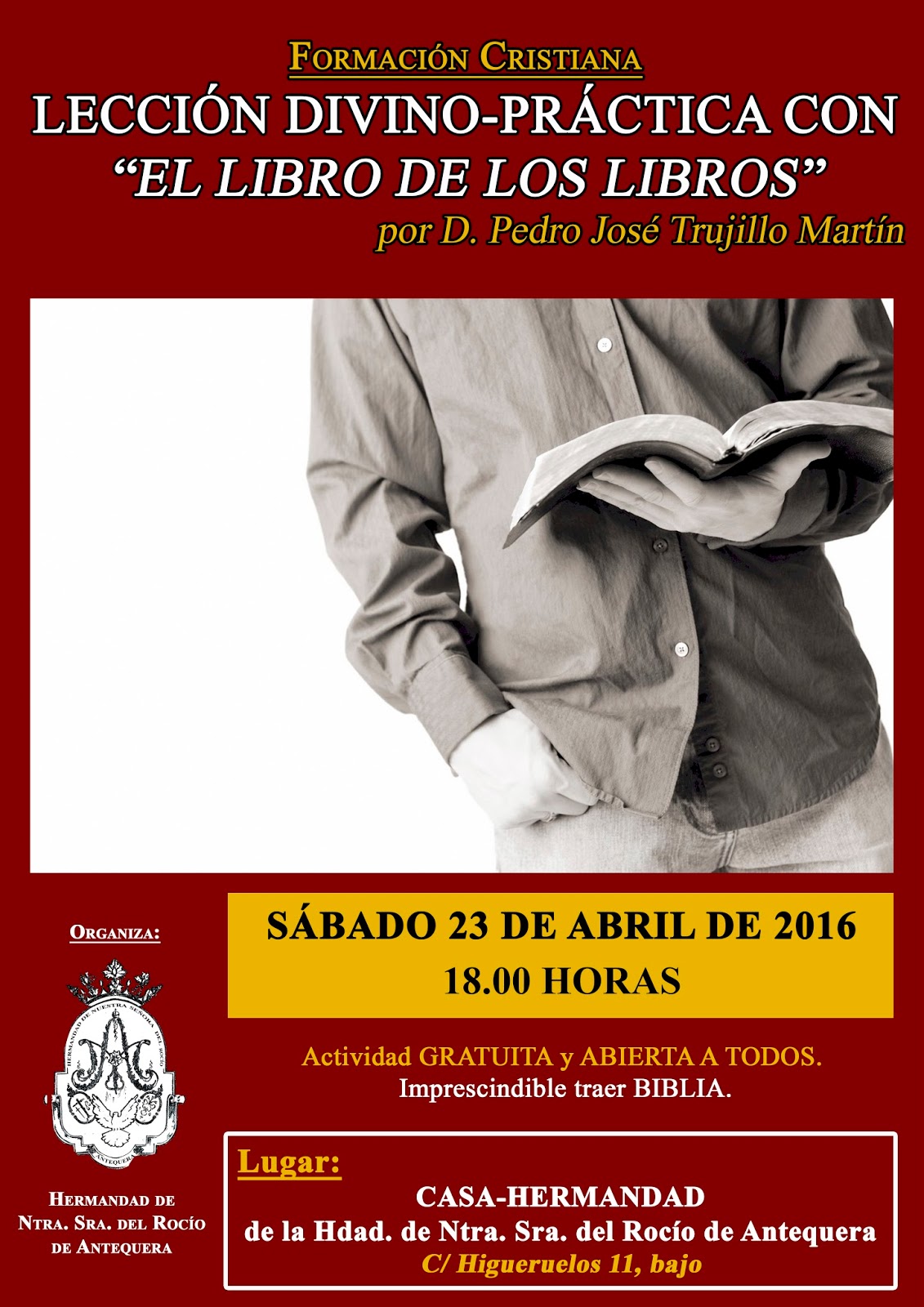 Hermandad del Rocío de Antequera, organiza para el próximo sábado 23 de Abril a las seis de la tarde en su Casa Hermandad una acción formativa