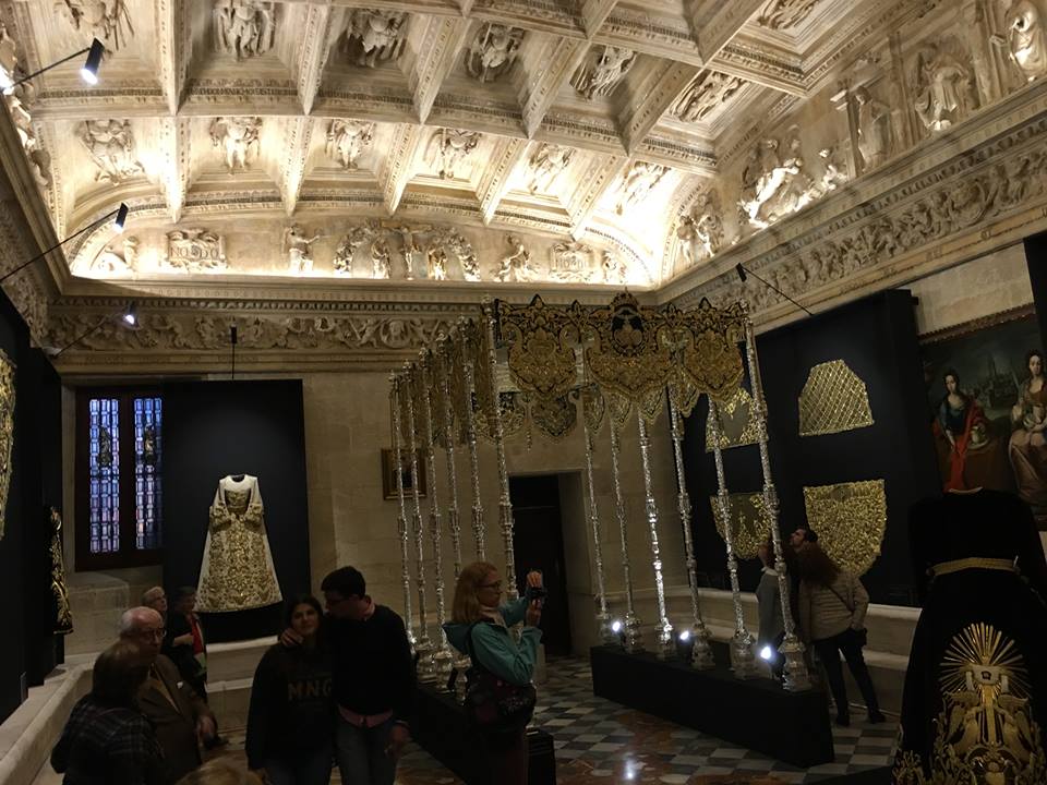 Miembros de la Real, Ilustre y Muy Antigua Archicofradía y Hermandad del Santo Entierro de Cristo y María Santísima de las Angustias junto con su Hermano Mayor a la cabeza han visitado la magnífica exposición del bordador Francisco Carrera Iglesias «Paquili».