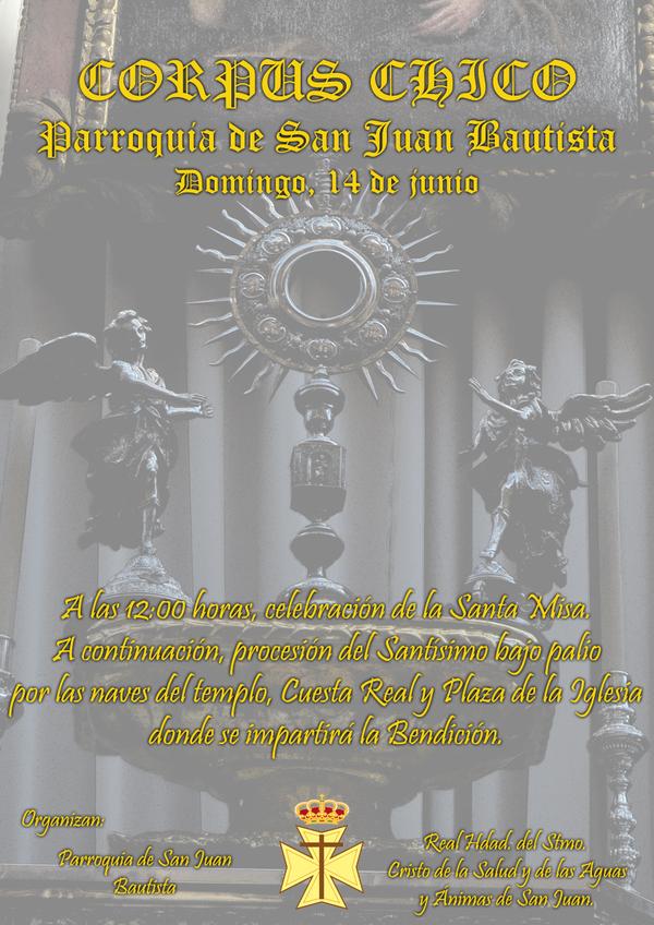 Este domingo, 14 de Junio, la Parroquia de San Juan Bautista y la Real Hermandad del Santisimo Cristo de la Salud y de las Aguas y Ánimas de San Juan, organizan el Corpus Chico de la Parroquia de San Juan.