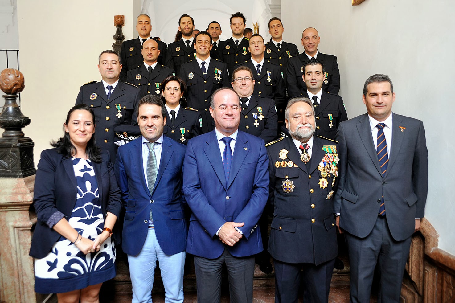 En este sentido, la medalla al mérito policial con distintivo blanco ha sido entregada a los agentes Ángel Ingrosso, Juan Manuel Cuesta, Antonio Galán, José Moreno, José Antonio García, Antonio Armero, Daniel Medina, José María Jimeno, Miguel Ángel Montenegro, David Valle, Mario Pérez y Encarnación Peláez. Las medallas a la constancia en el servicio, tras cumplir 15 años de ejercicio con intachables expedientes, ha sido entregada a Manuel Jerónimo Calzada, Miguel Ángel Montenegro, José Antonio García y Antonio Sierras. Por último, Federico Ramos ha recibido una mención especial al servicio policial recibiendo un pergamino.