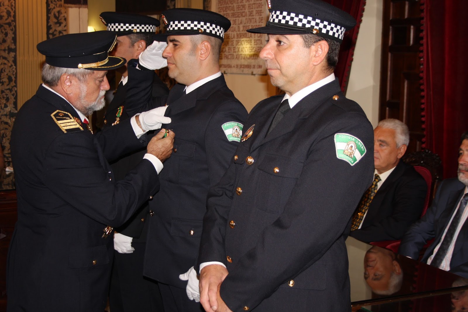 Así, han recibido la medalla al mérito policial con distintivo blanco los agentes Juan Antonio Real y Daniel Medina por su actuación en un homicidio ocurrido en la Semana Santa de 2012 y que con su colaboración se pudo detener al presunto autor.