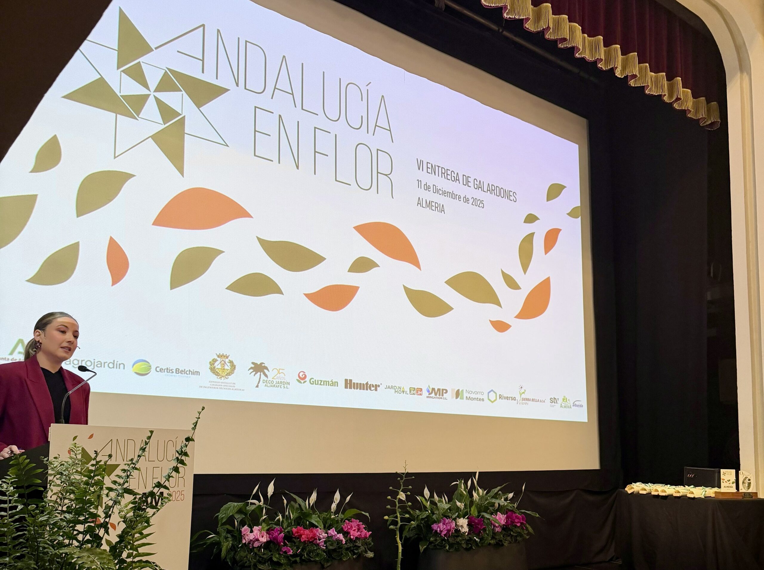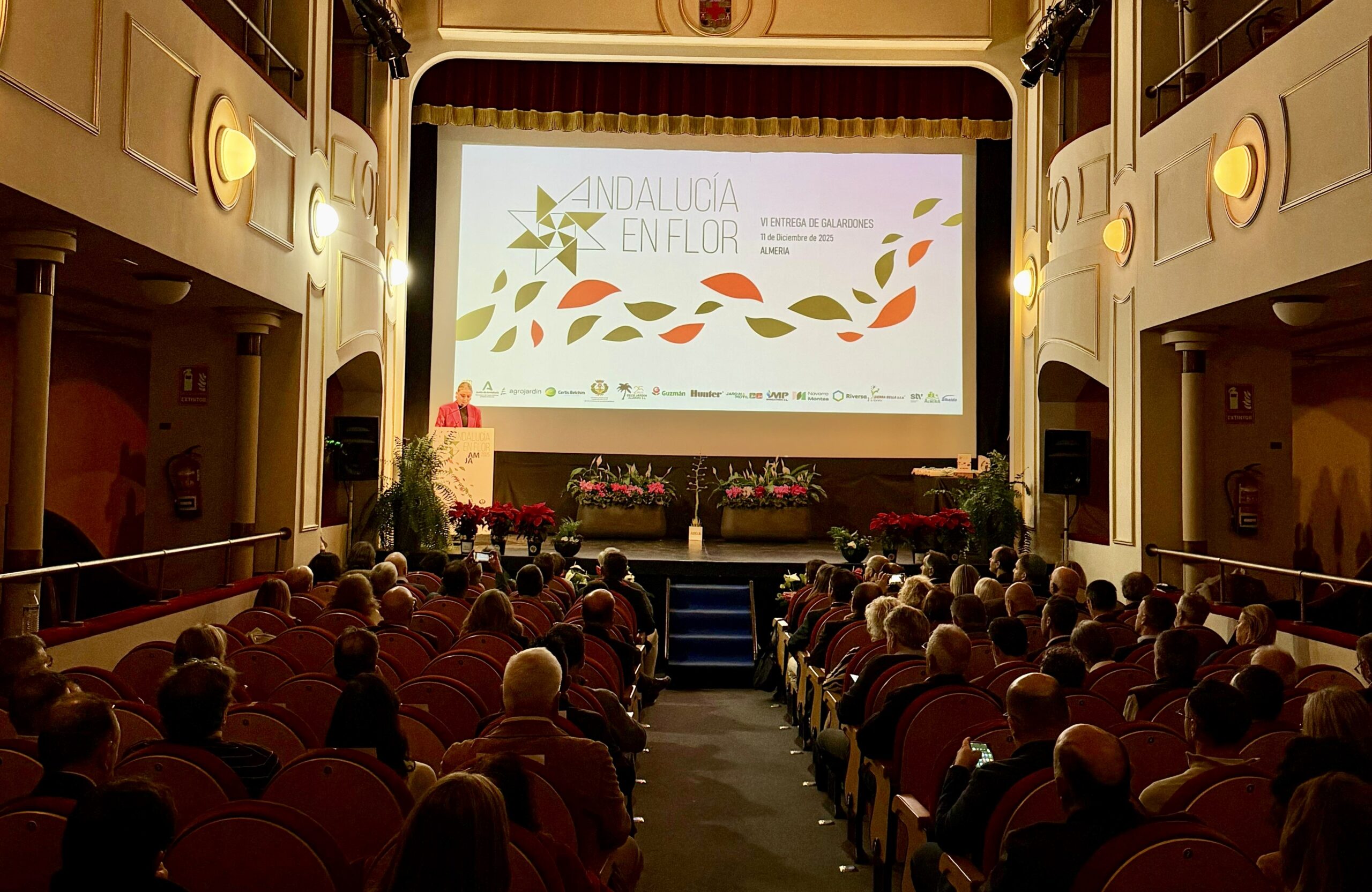 El Teatro Apolo de Almería acogió ayer, 11 de diciembre de 2025, la ceremonia de entrega de los Premios Andalucía en Flor, organizada por la Asociación Multisectorial de la Jardinería Andaluza (AMJA). Un evento en el que se reconoce la excelencia en la gestión de zonas verdes, la mejora ambiental y la apuesta por entornos urbanos sostenibles en toda Andalucía.