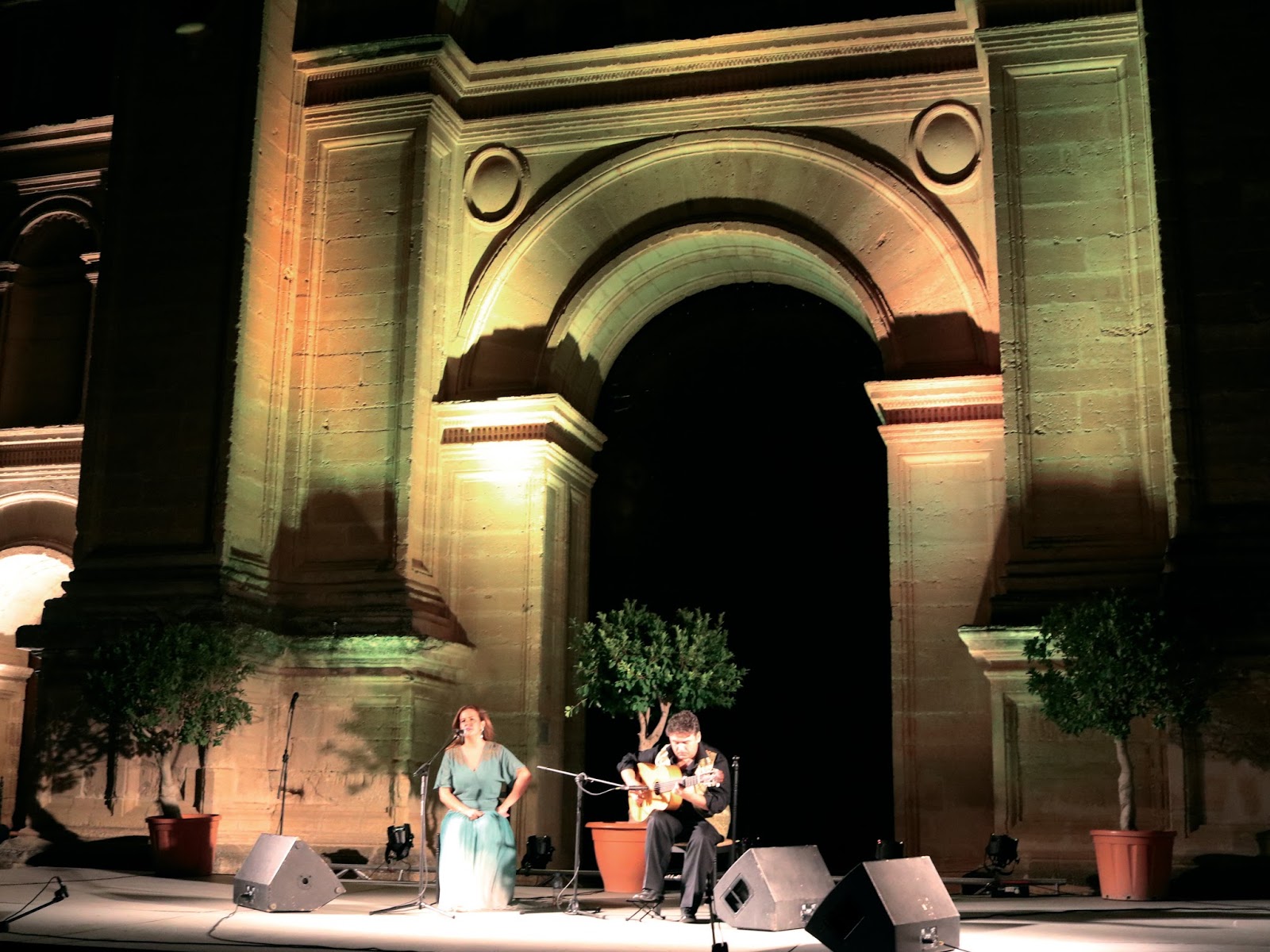 En esta XXXI edición de la Noche Flamenca, las mujeres han sido las protagonistas. A las 22:30 horas Esther Merino, ganadora del XXVIII Concurso de Cante Flamenco ‘Juan Casillas’ de Antequera, fue la encargada de abrir esta velada flamenca. La joven extremeña cerró su actuación por bulerías, consiguiendo la ovación de toda la Plaza de los Escribanos.