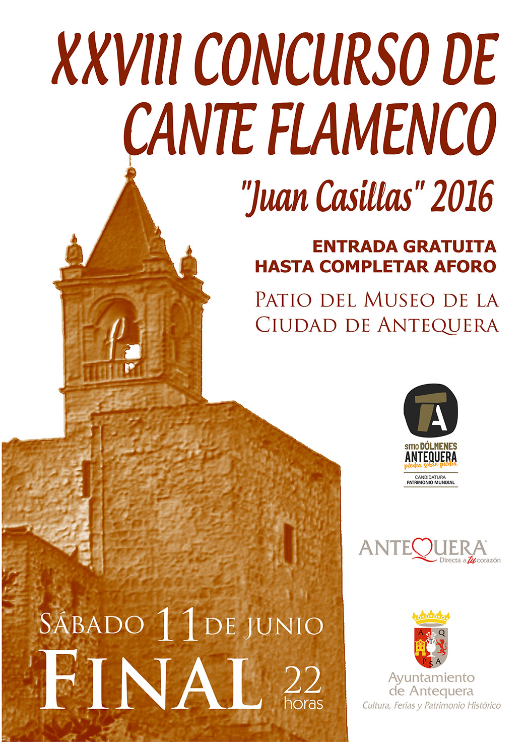 El XXVIII Concurso de Cante Flamenco ‘Juan Casillas’ de Antequera celebrará su final -cuya entrada será gratuita- este próximo sábado, en la que competirán por el primer premio Esther Merino Pilo, de Gévora (Badajoz), y Paqui Corpas Martín, de Málaga.