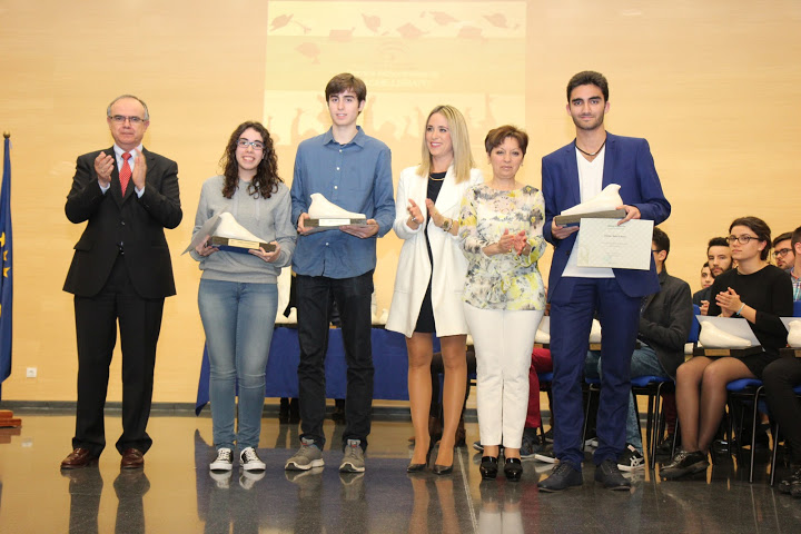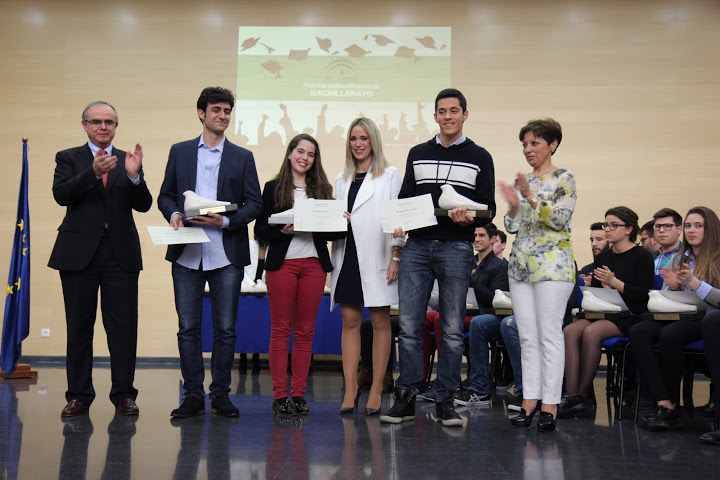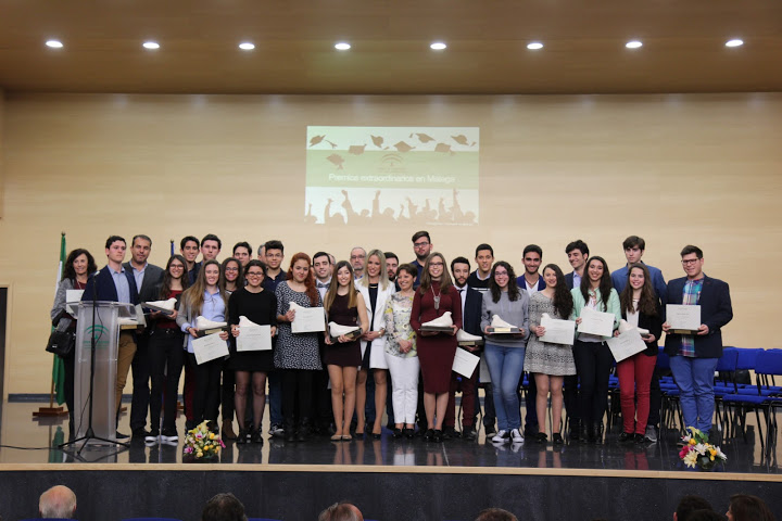 El auditorio del Conservatorio Gonzalo Martín Tenllado acogió el pasado jueves 17 de marzo un acto organizado por la Delegación Territorial de Educación de Málaga para reconocer el trabajo de los 36 estudiantes que obtuvieron en la última convocatoria premios extraordinarios en distintas enseñanzas. Entre ellos estaban dos alumnos de 2º Bachillerato del IES Pedro Espinosa: Laura Jurado Ropero y José Ramón Pérez Patricio, dos de los trece alumnos que obtuvieron Premio Extraordinario de Bachillerato en la provincia de Málaga.