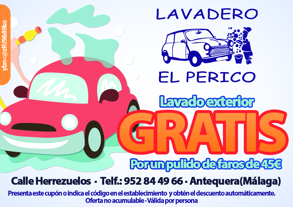 Lavadero El Perico, profesionales del lavado de coches te ofrecen este cupón descuento, exterior gratis por un pulido de faros de 45 €.