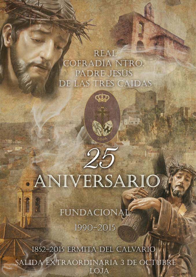La Real Cofradía de Nuestro Padre Jesús de las Tres Caidas de Loja celebra su vigesimoquinto Aniversario Fundacional y de recuperación de la Ermita de Jesús del Calvario (quemada durante la Guerra Civil) y cruces del antiguo via crucis penitencial con una salida procesional extraordinaria con su Nazareno este próximo sábado.