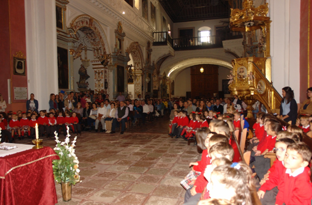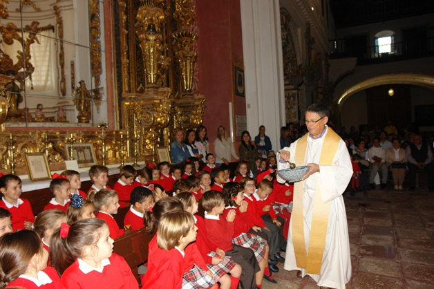 Los alumnos de Educación Infantil que este curso escolar han empezado su andadura en el Colegio Nuestra Señora del Carmen se reunieron el pasado viernes a las nueve y media de la mañana, junto a sus familiares y profesores en la Iglesia del Carmen para tener un acto religioso como señal de bienvenida al colegio.
