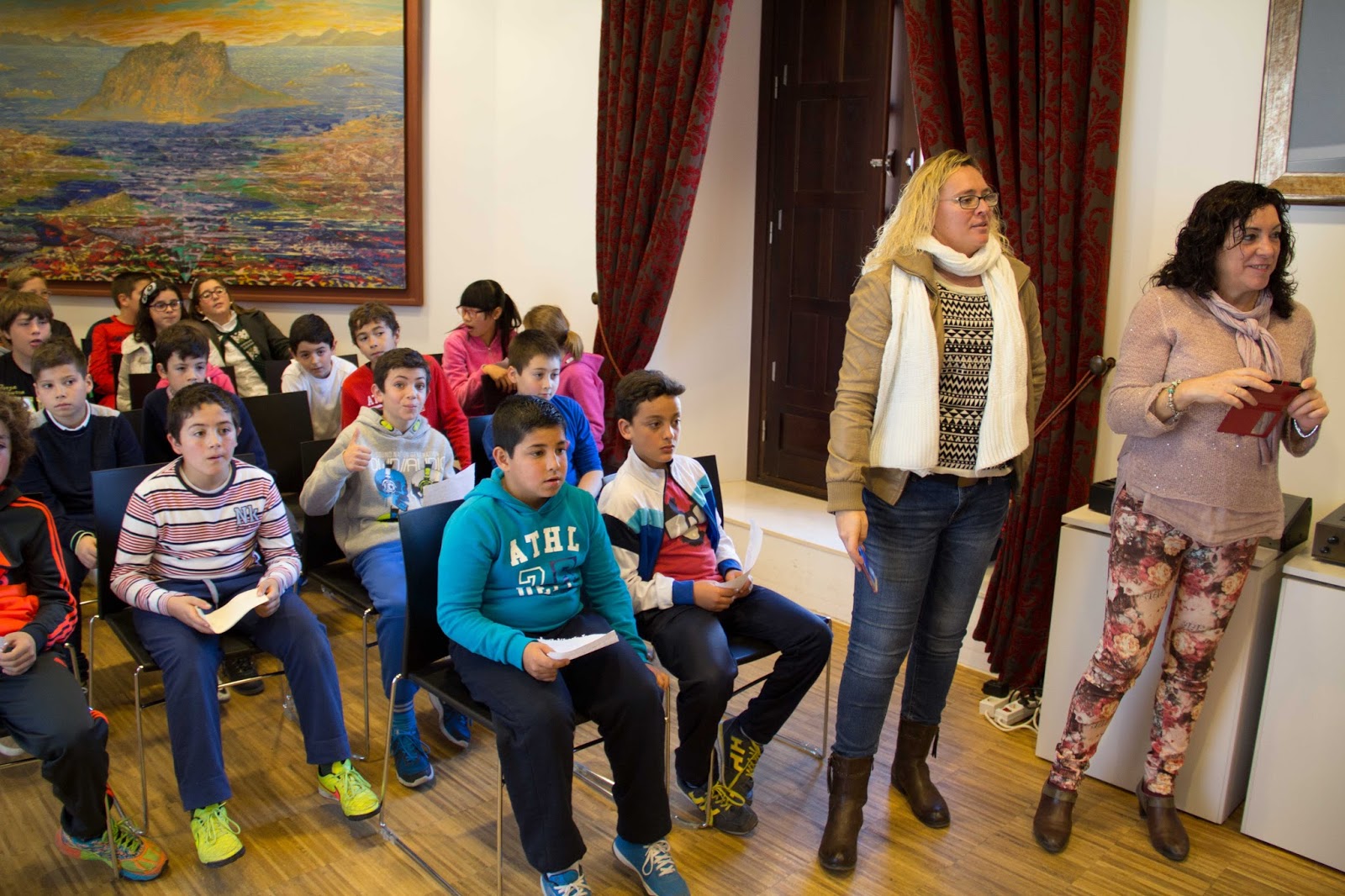 La alcaldesa de Archidona junto a la concejala de juventud Isabel Alba explicó puntualmente algunas de las muchas preguntas que los más jóvenes plantearon a lo largo de su recorrido por las diferentes salas y despachos.