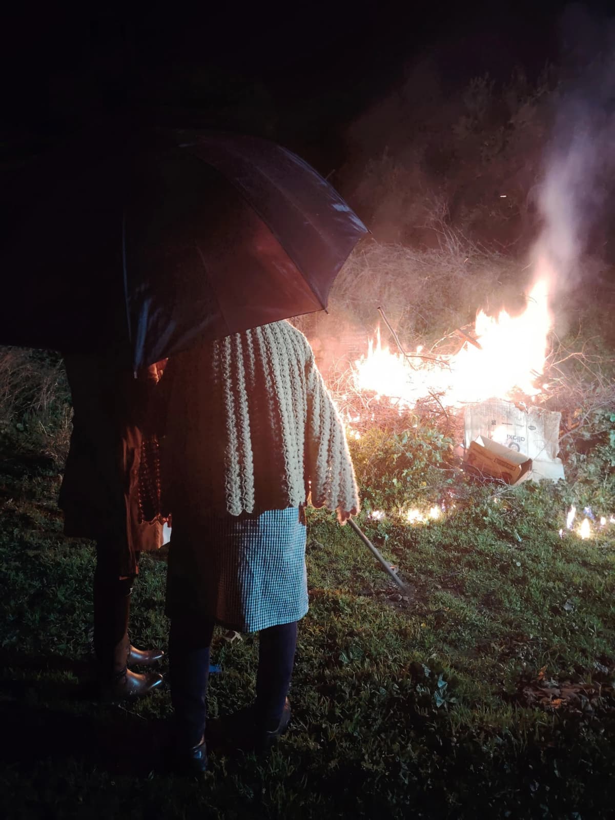 “A mi siempre me ha gustado pensar que las Candelas también son una forma de quemar lo que ya no queremos en nuestra vida, aunque no sea de forma literal”, explica Antonio que, como vecino del lugar, ha visto a su familia crecer junto a esta tradición. “Es algo emocionante porque, cuando era un niño, me sentaba justo aquí, en esta misma tierra, pero era mi padre el que me ayudaba a sostener la rama de olivo para echarla al fuego y pedir un deseo. Ahora, que él ya no está, soy yo el que coge la mano de mi hija para ayudarla a hacerlo”.