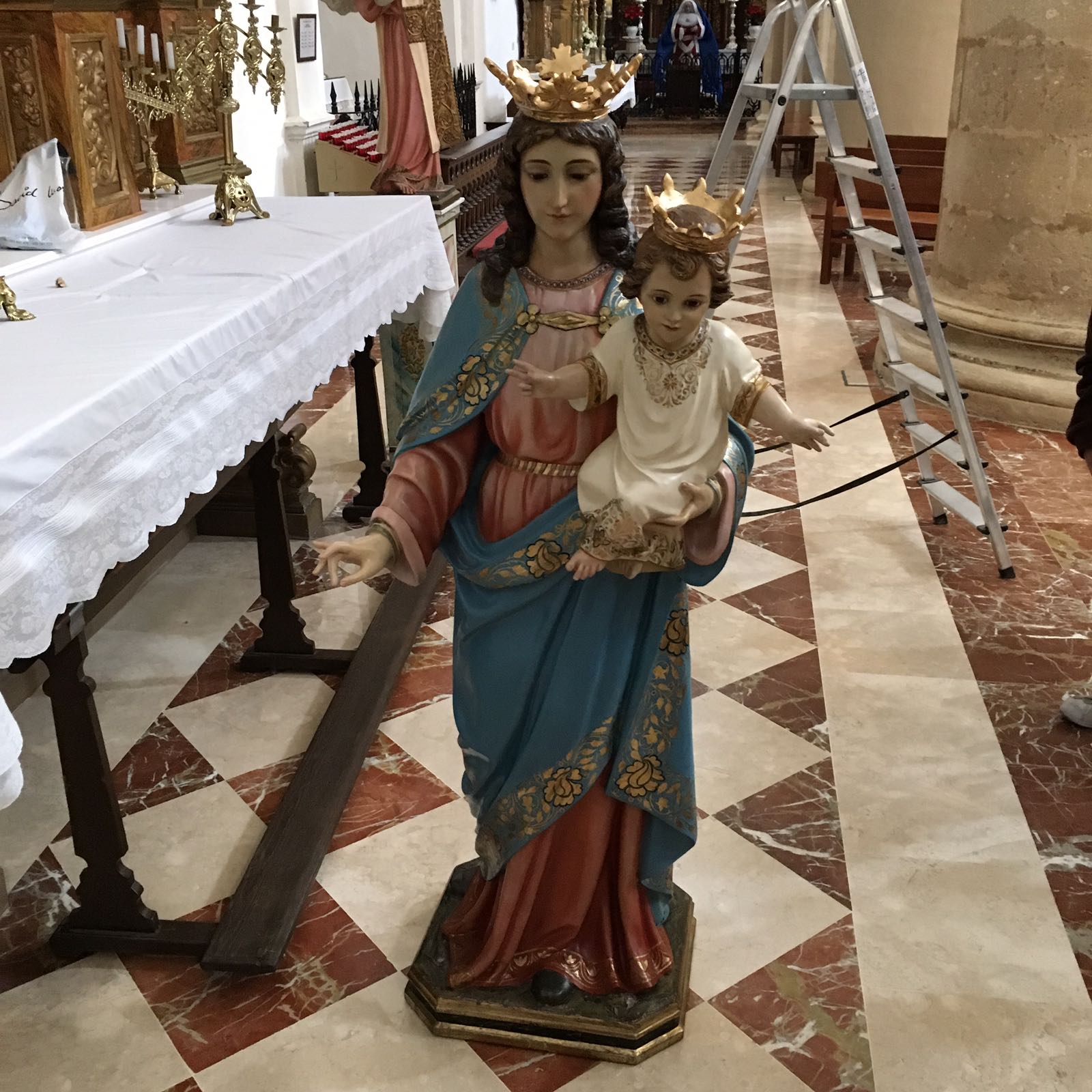 Maria Auxiliadora ya ha regresado a su altar en la Iglesia de San Pedro de Antequera, tras proceso de restauración en el taller municipal de restauración municipal que dirige Marisa Olmedo.