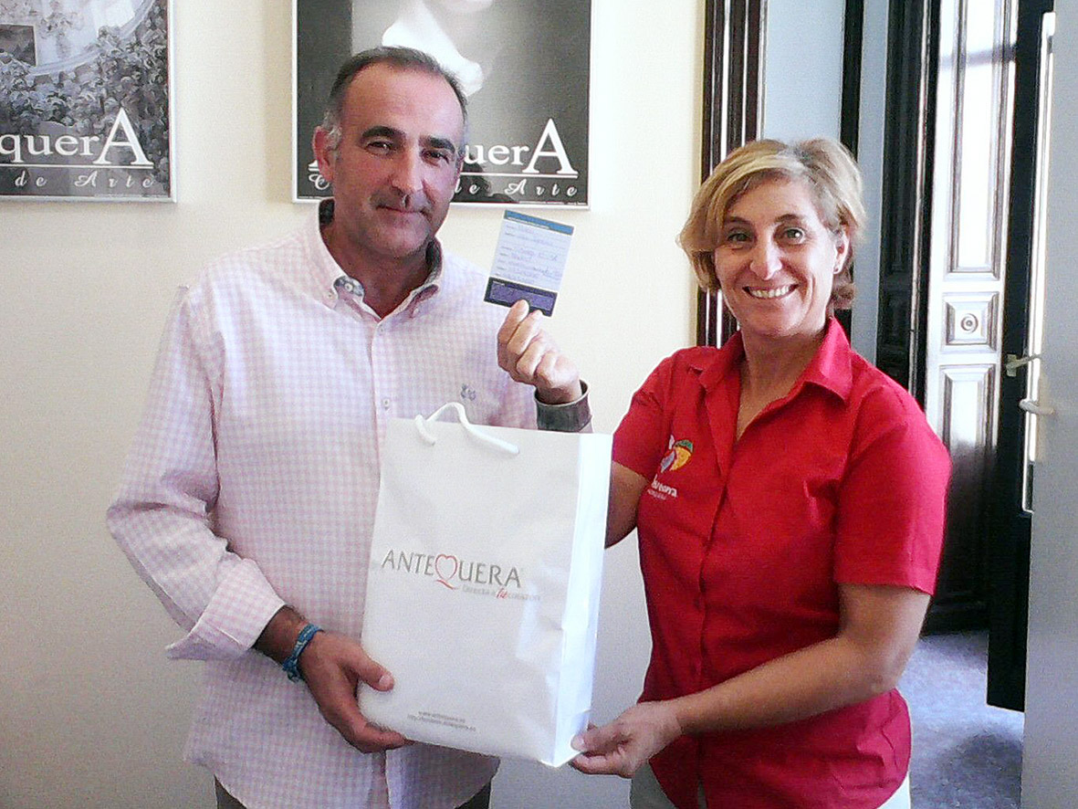 La ganadora del sorteo del mes de septiembre correspondiente a la campaña promocional de la renovada Tarjeta Destino Antequera que sirve como reclamo en todas las citas turísticas a las que acuda el municipio durante el año 2015 ha sido María Cobo Iglesias, vecina de Madrid.
