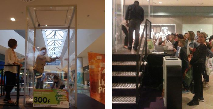 La campaña que se inicia este viernes lleva el nombre de ‘Lluvia de Premios’, es el segundo año que se lleva a cabo y consiste en la instalación de una cabina transparente en la que el participante en el juego se introduce y debe procurar atrapar un regalo de entre todos los boletos (siempre premiados) que durante varios segundos ‘lloverán’ sobre su cabeza.