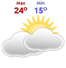 El tiempo en el día de hoy en Antequera sera nuboso con algunas apariciones del sol a lo largo de la jornada, la temperatura será de un máximo de 24º y un mínimo de 15º