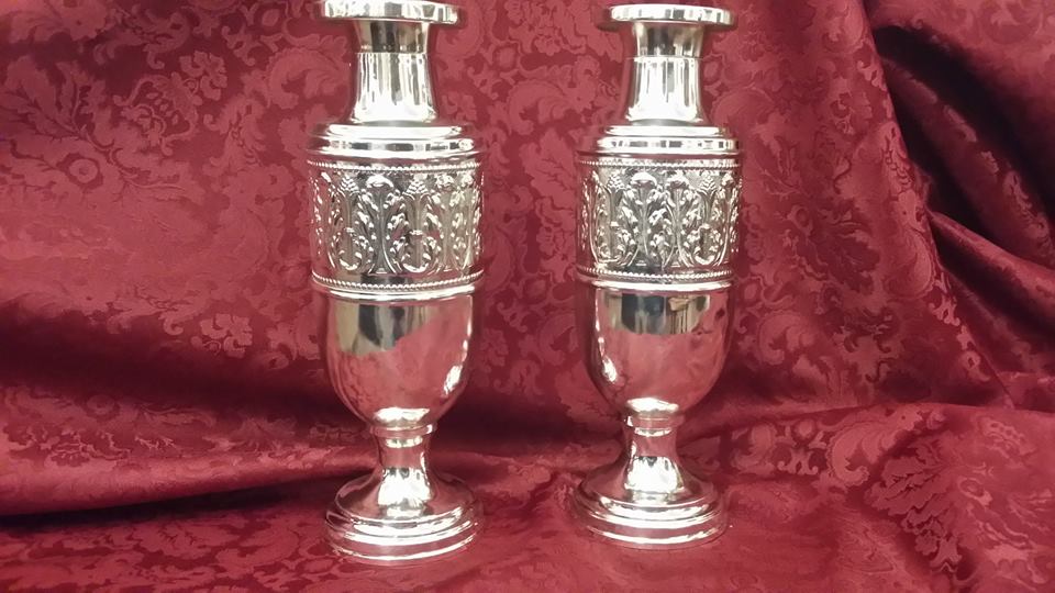 La Esclavitud de los Remedios, Patrona Mariana de Antequera estrenará nuevas ánformas en su trono procesional el próximo mes de Septiembre. Mesón Juan Manuel ha donado las mismas que han sido plateadas por la Corporación Cofrade.