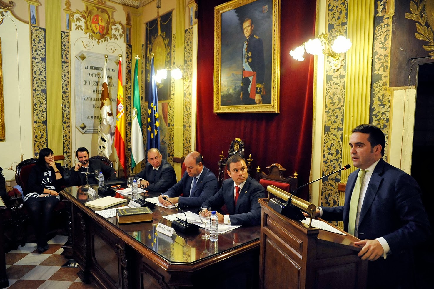 El Salón de Plenos del Ayuntamiento de Antequera acogió en la tarde de ayer martes 19 de noviembre la toma de posesión de los integrantes de la nueva directiva de la Delegación Comarcal del Colegio de Médicos de Málaga. Dicho acto estuvo presidido por el alcalde de Antequera, Manolo Barón, el presidente del Colegio de Médicos de Málaga, Juan José Sánchez, y el nuevo delegado comarcal para Antequera, Pablo de Rojas. Además, también estuvieron presentes el delegado del Gobierno de la Junta de Andalucía en Málaga, José Luis Ruiz, y el diputado provincial por nuestra Comarca, Jacobo Florido, así como una nutrida representación del Equipo de Gobierno y la Corporación Municipal.
