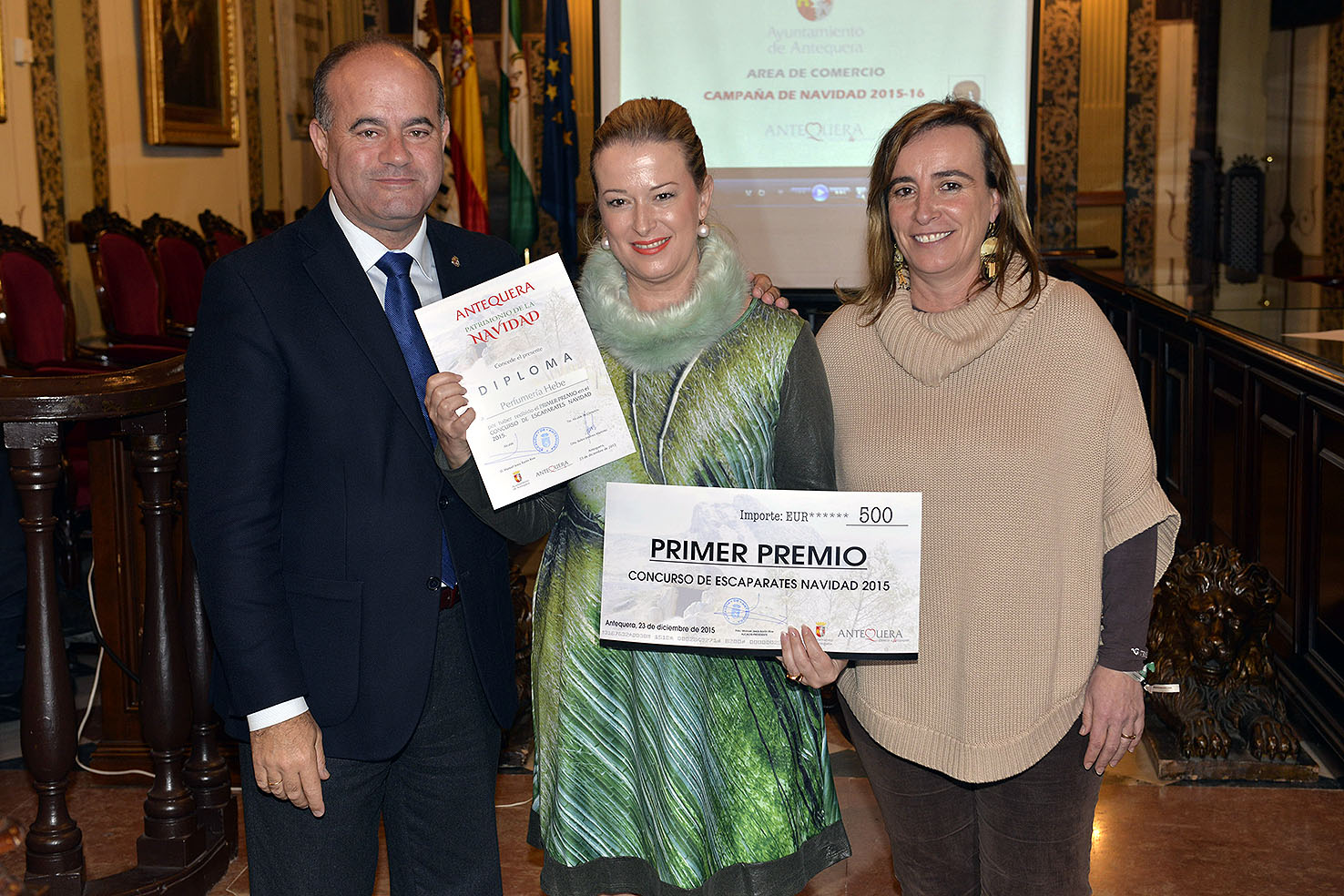 El alcalde de Antequera, Manolo Barón, y la teniente de alcalde Turismo, Comercio y Promoción para el Empleo, Belén Jiménez, han presidido la entrega de premios tanto del Concurso de Escaparates como del nuevo Concurso de Balcones y Fachadas que organiza y promueve el Área de Comercio del Ayuntamiento de Antequera dentro de la Campaña Comercial de Navidad. En total han sido 31 los comercios antequeranos participantes en la primera modalidad y 7 los vecinos que han integrado la segunda.
