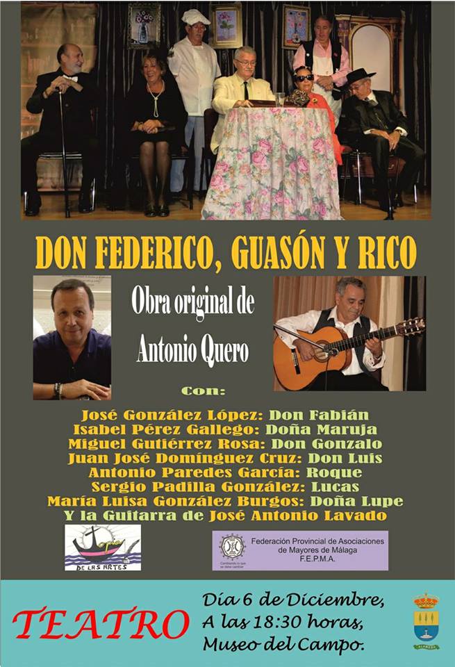 OcioActividades CulturalesComarca de AntequeraAlamedaConciertos y Espectáculos Representación Teatral en Alameda el 6 de Diciembre Por Redacción Las 4 Esquinas - 1 de diciembre de 2016 0 196 FacebookTwitterPinterestWhatsApp Martes 6 de Diciembre, 18.30 horas Museo del Campo de Alameda, Málaga PUBLICIDAD