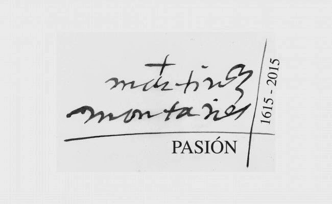 Ha usado tinta marrón, que se virará a blanco y negro, cuando vaya según qué fondo. La firma, apellido sobre apellido, va acompañada de las fechas de la efemérides: 1615-2015 y de la palabra «Pasión», ambas realizadas con técnicas informáticas.