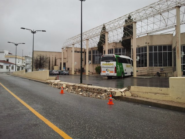 Roban de madrugada un autobús de la estación de Antequera que termina empotrado en el pósito. Los hechos ocurrieron entre las 3.30 y 4.30 de la madrugada de este domingo. El vehículo derribó el muro de la estación nada más salir de su aparcamiento y circuló durante un importante espacio de tiempo a su antojo por la ciudad llevándose a su paso señales de tráfico, semáforos pivotes e incluso golpeando a vehículos aparcados en el centro de la localidad hasta terminar empotrado en el callejón sin salida del Archivo Histórico Municipal. Los pivotes de granito de esta zona han terminado destrozados.